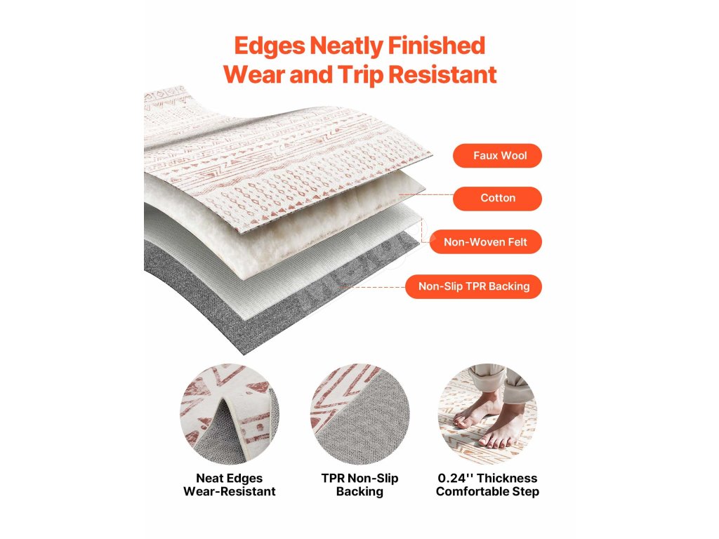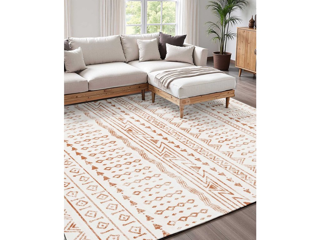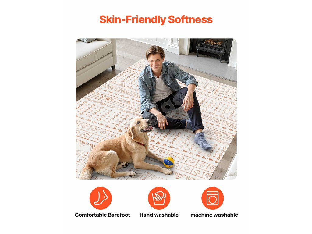 Koberec 5×8 ft umývateľný, protišmykový, odolný proti trhaniu, béžový