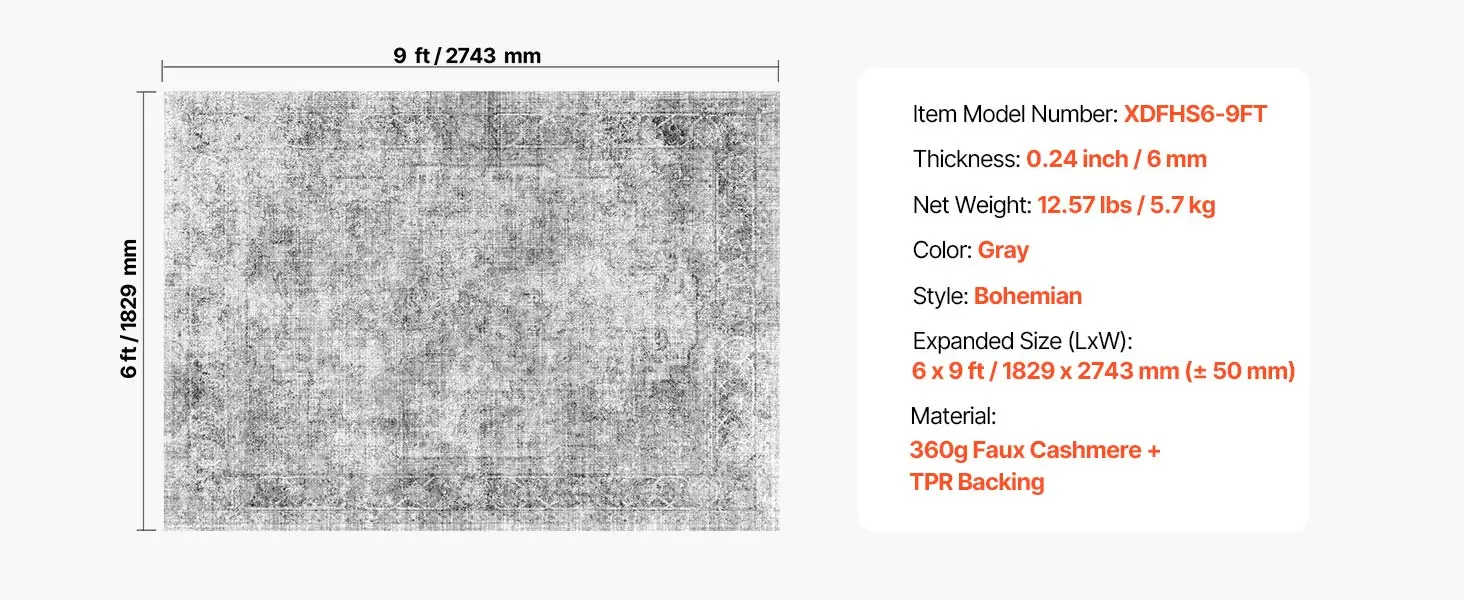 Koberec 6×9 ft umývateľný, protišmykový, mäkký, odolný voči trhaniu