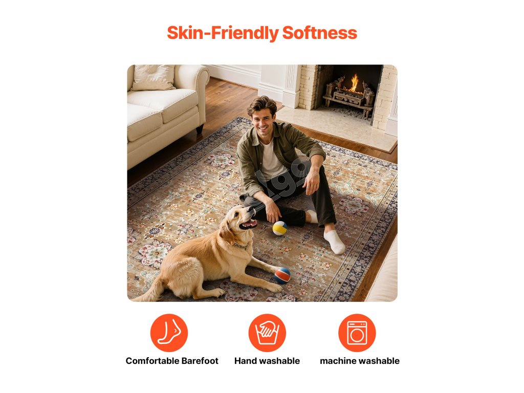 Koberec do interiéru 8 × 10 ft prateľný, protišmykový, odolný