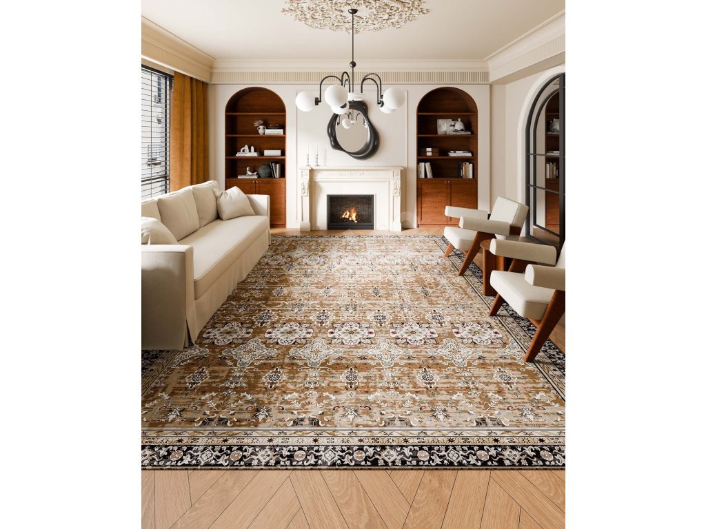 Koberiec 9×12 ft umývateľný, protišmykový, odolný, hnedo-zelený