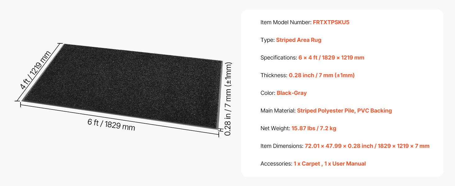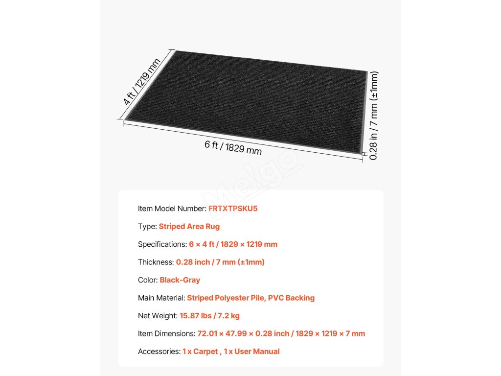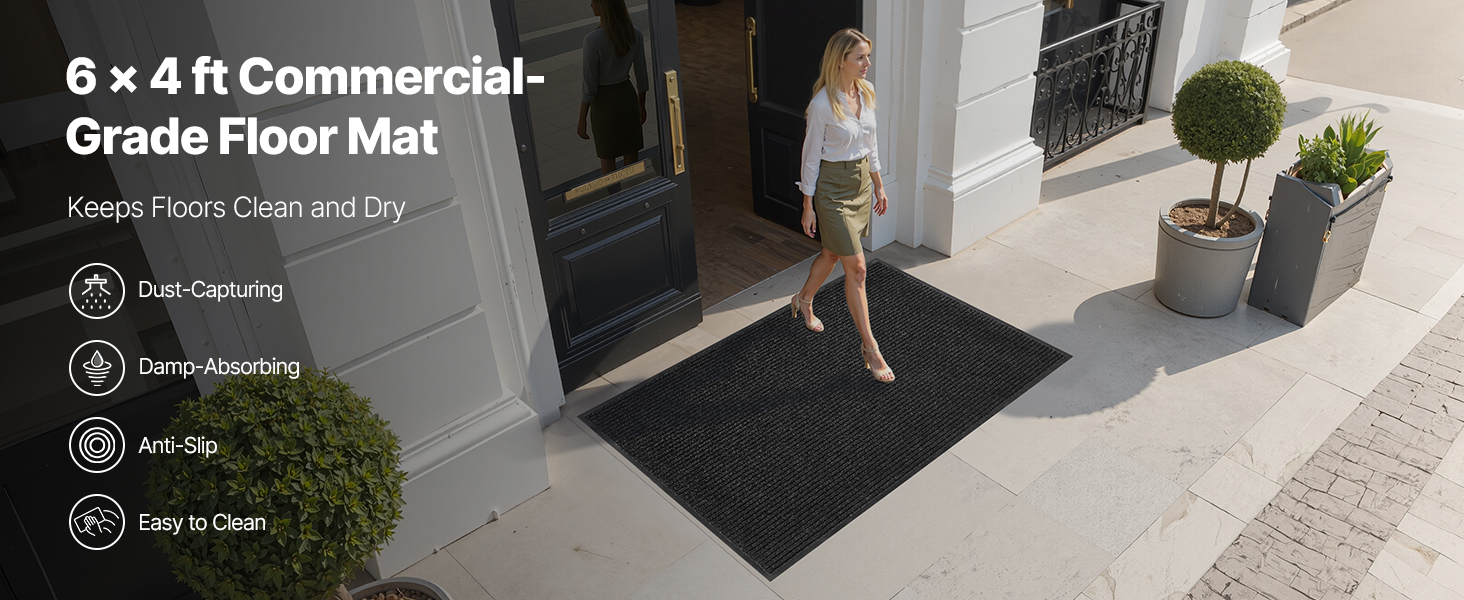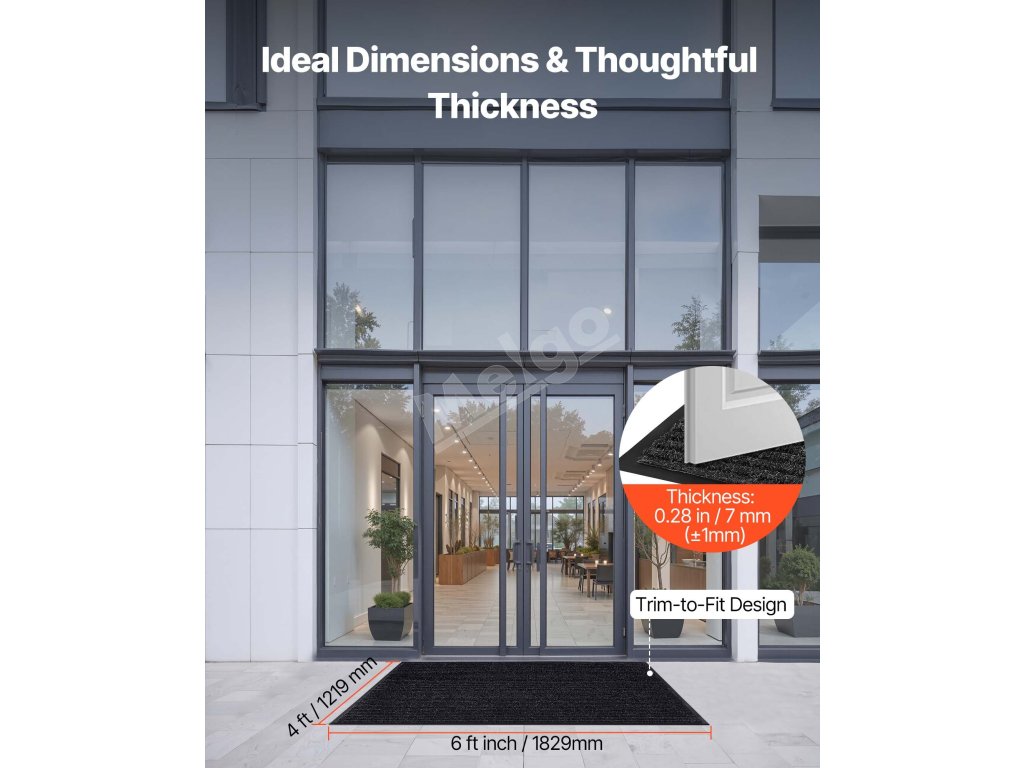 Rohožka na predné dvere s rozmermi 6 x 4 stopy / 1829 x 1219 mm dokonale pokryje chodby, terasy, verandy a iné otvorené priestory a ponúka praktickosť aj univerzálne použitie.