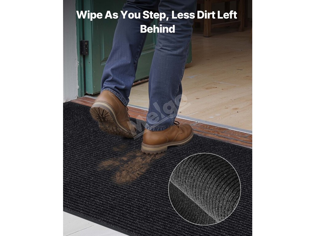 Koberec na dvere s dlhým pruhovaným dizajnom s hlbokými drážkami je vysoko odolný proti opotrebovaniu a poškriabaniu. Účinne odstraňuje nečistoty a prach z obuvi, čím udržiava podlahy čisté a suché.