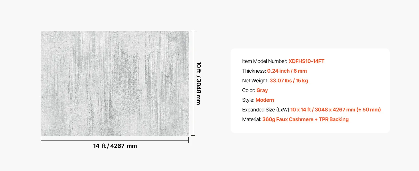 Umývateľný koberec 10 × 14 ft, protišmykový, odolný, sivý pre zvieratá