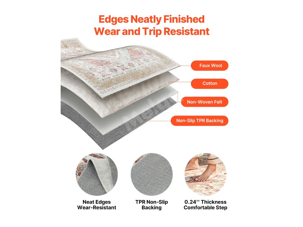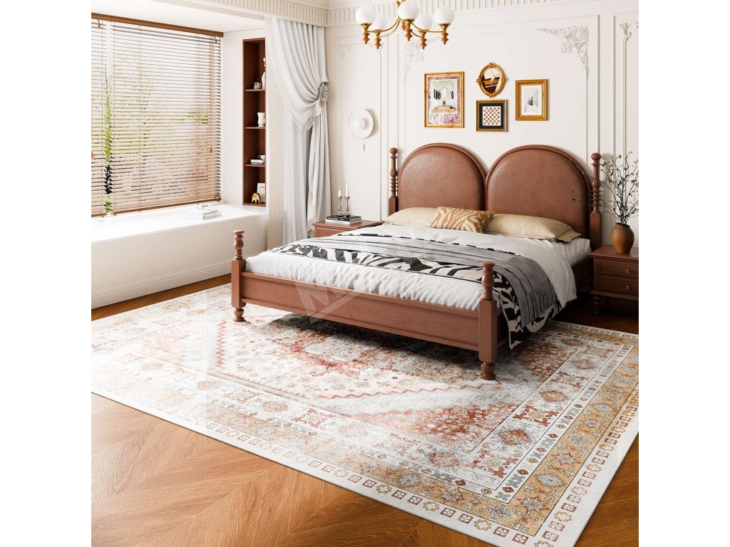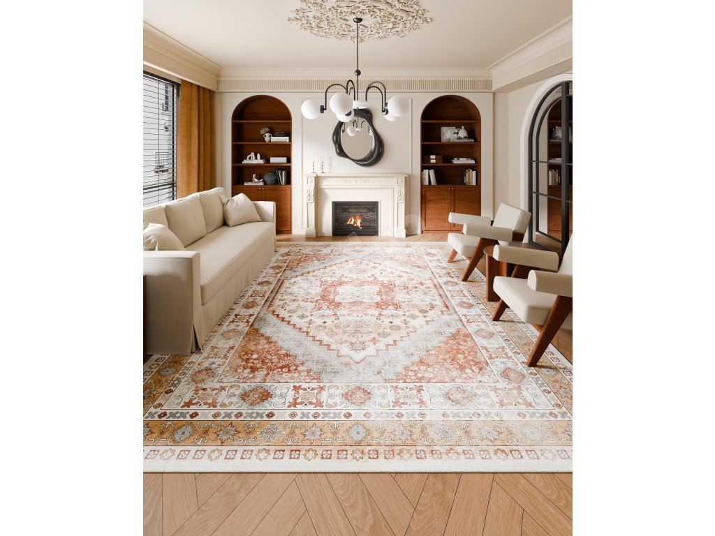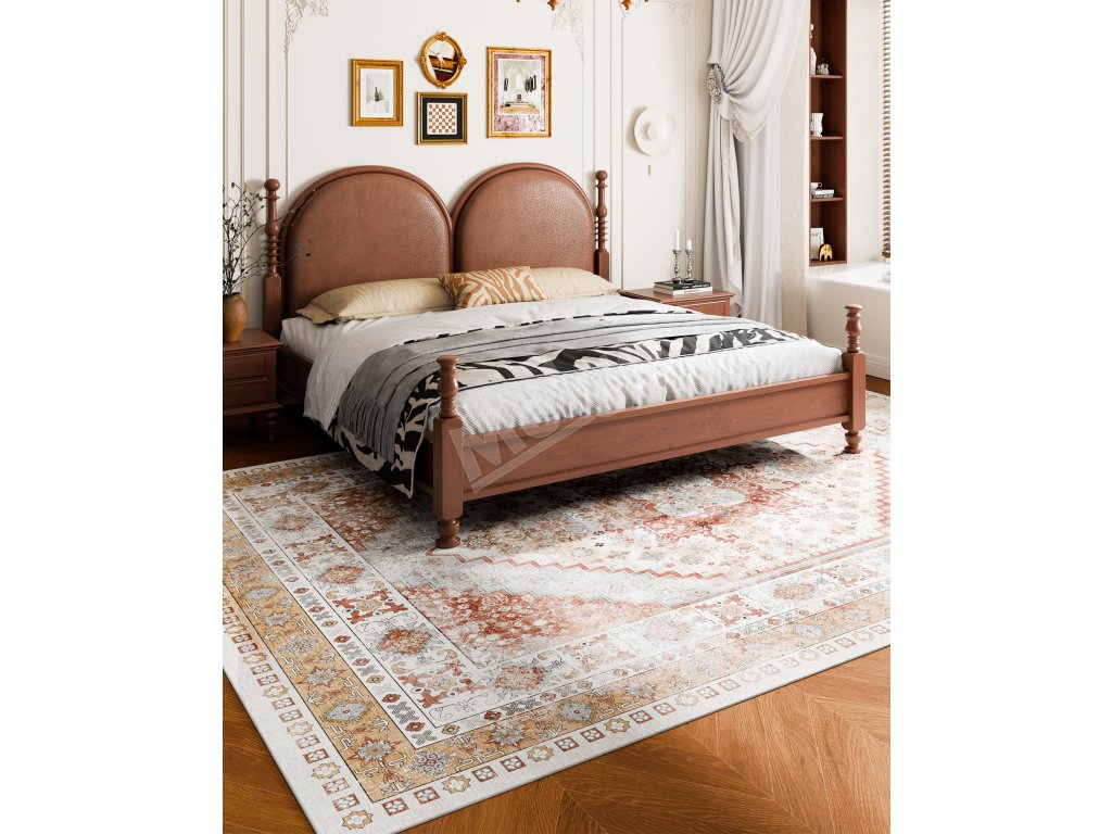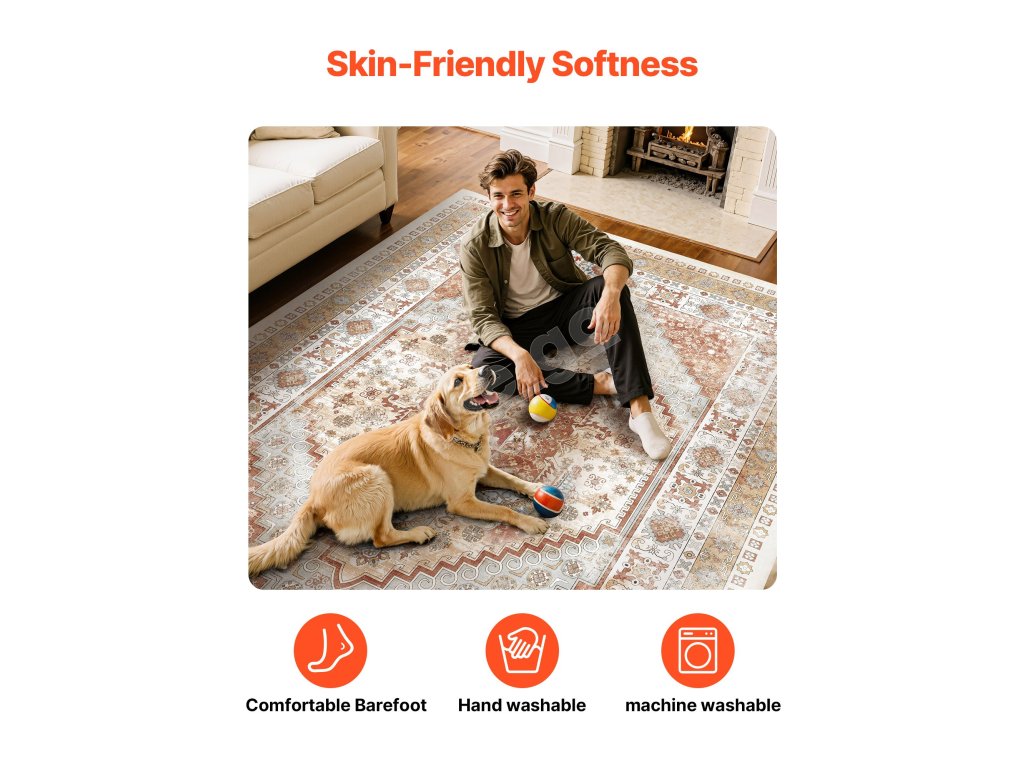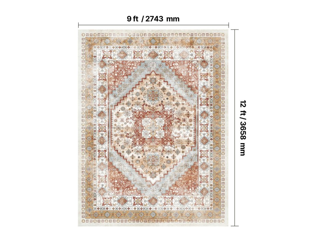 Umývateľný koberec 9×12 ft, protišmykový, odolný, hnedo-červený