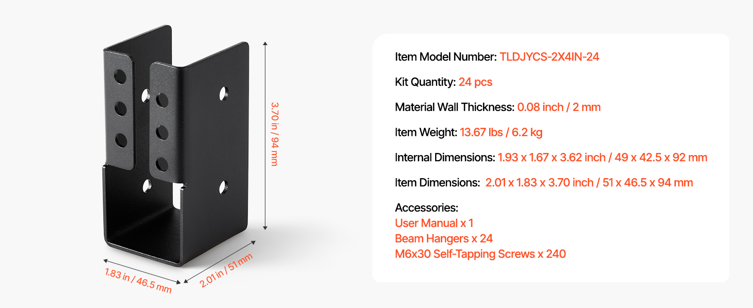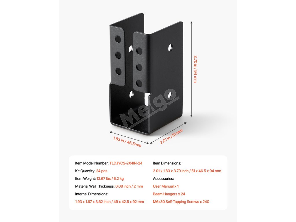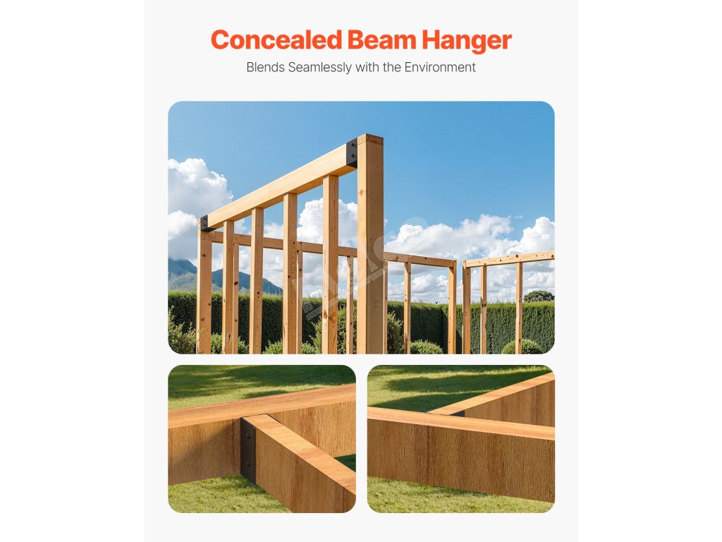 Tieto jednoduché a robustné závesy na trámy sú vhodné pre rezivo 2x4 (skutočný rozmer 1,93 x 3,62 palca) a ponúkajú silnú, hrdzavú oporu pre záhrady, ihriská, prístrešky a ďalšie. Jednoduchá inštalácia pomocou priloženého hardvéru - skvelé pre domácich majstrov aj profesionálov.