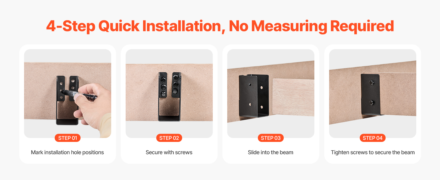 Nie je potrebné žiadne meranie. Náš závesný trám so skrytou prírubou je vybavený predvŕtanými otvormi na rýchlu montáž, čo vám ušetrí čas a námahu počas nastavovania.