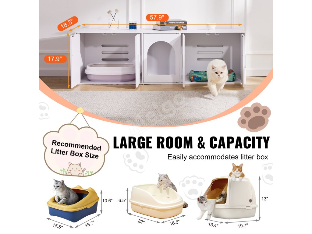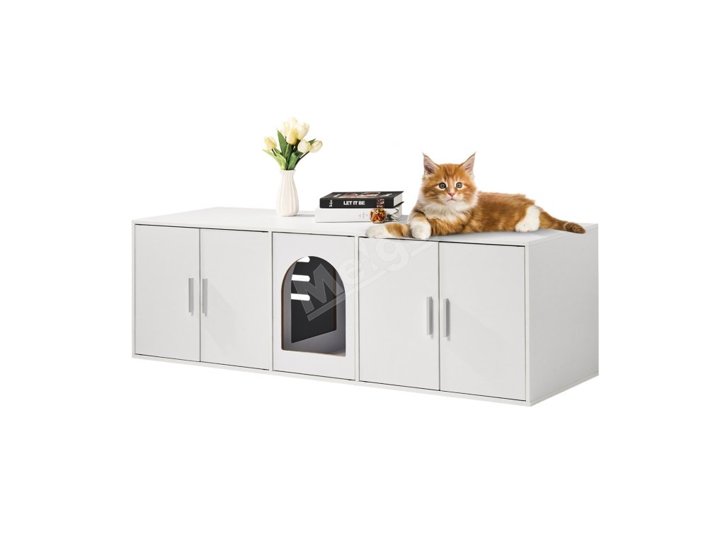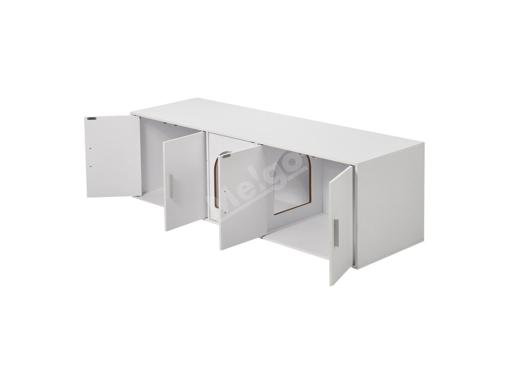 Skrinka na mačací záchod drevená skrytá 147.1 cm biela s dvierkami