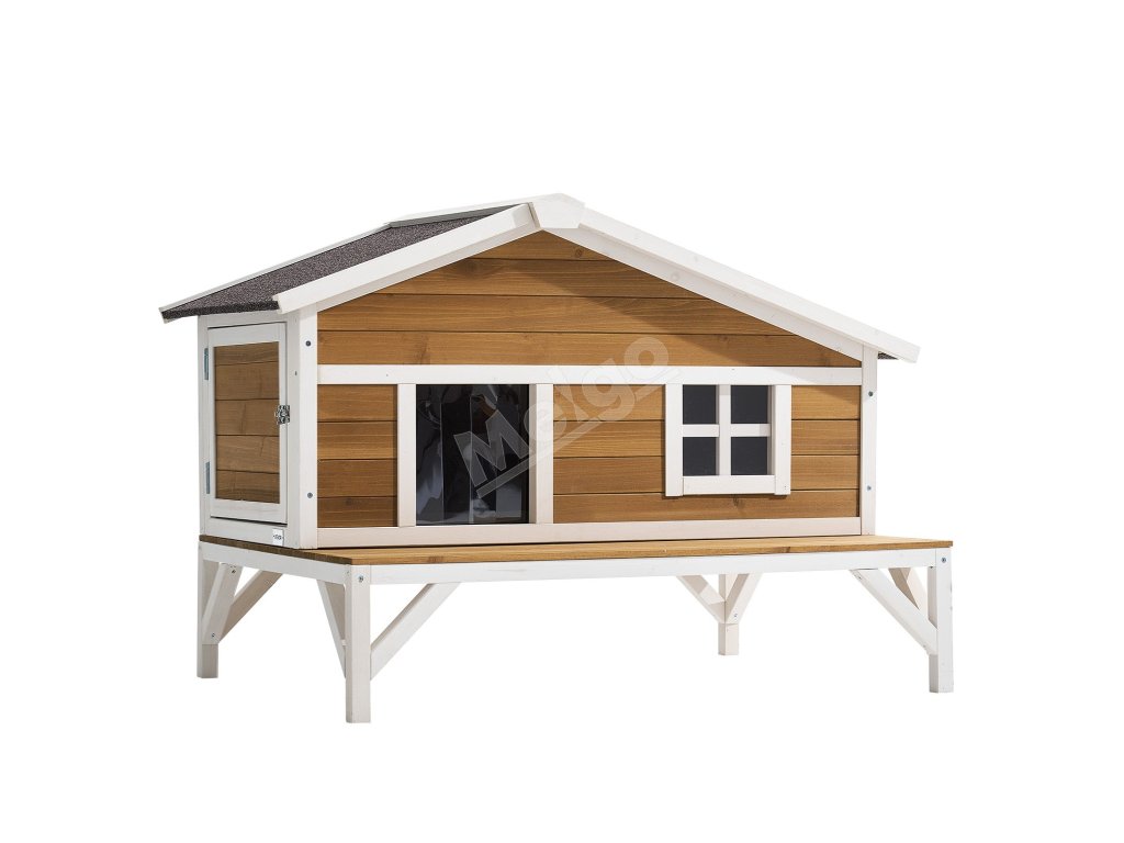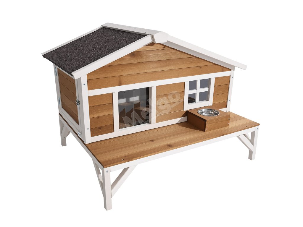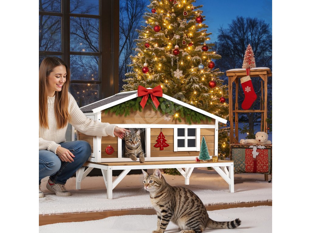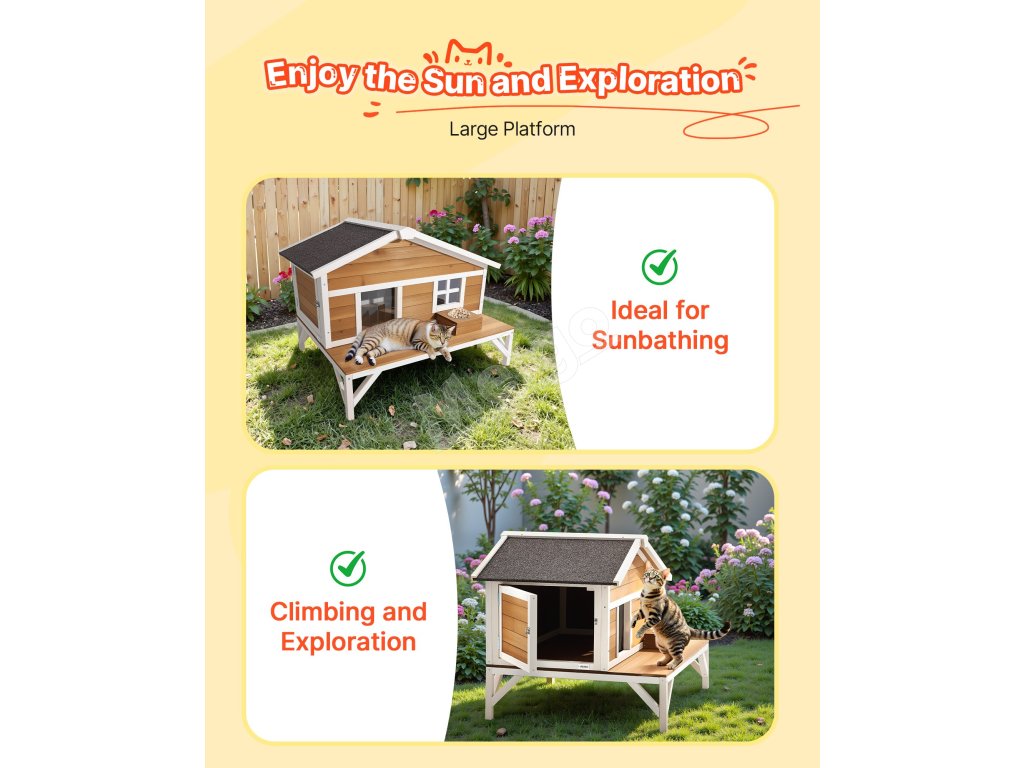Tento vyvýšený domček pre mačky má veľké bočné dvere, vďaka ktorým je ideálny pre väčšie mačky alebo rodiny s viacerými mačkami. Vyvýšená plošina na skákanie poskytuje mačkám ďalší priestor na šplhanie, skúmanie a vyhrievanie sa na slnku.