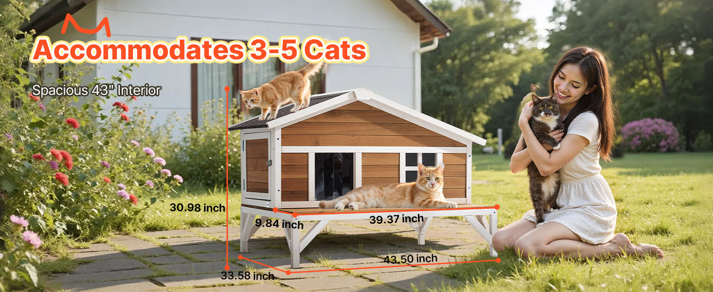 vnútorný priestor široký 43" pohodlne pojme 3 až 5 mačiek a ponúka dostatok priestoru na odpočinok, hranie alebo čas strávený osamote bez stresu. Každá mačka sa môže voľne pohybovať, čo zlepšuje kvalitu života.