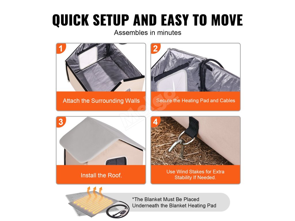Tento prístrešok pre mačky je vybavený zabudovanou vyhrievacou podložkou a mäkkou dekou na pohodlné udržiavanie telesnej teploty vašej mačky. Šesťstranná izolačná vrstva z hliníkovej fólie a perleťovej bavlny účinne znižuje tepelné straty, čím udržiava interiér v zime teplý a útulný pre vašu mačku.