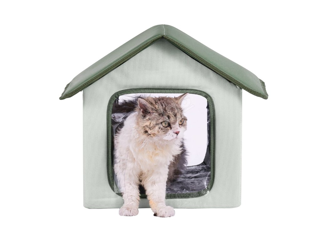 Prístrešok poskytuje vďaka 4 vrstvám materiálov skvelú ochranu vašej mačky pred premenlivým počasím. Vonkajšia vrstva pozostáva z nepremokavého PVC povlaku a tkaniny 600D Oxford, ktorá zabraňuje prenikaniu dažďovej vody, zatiaľ čo vnútorná vrstva zvyšuje izoláciu pomocou hrubej perleťovej bavlny a hliníkovej fólie.