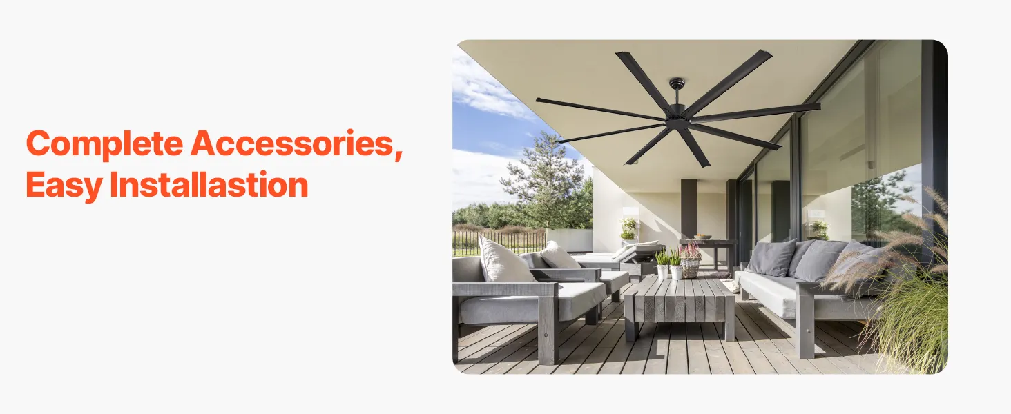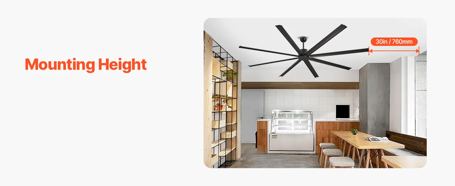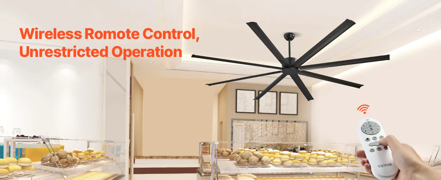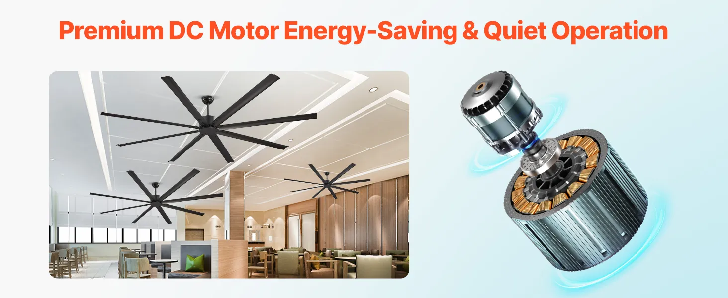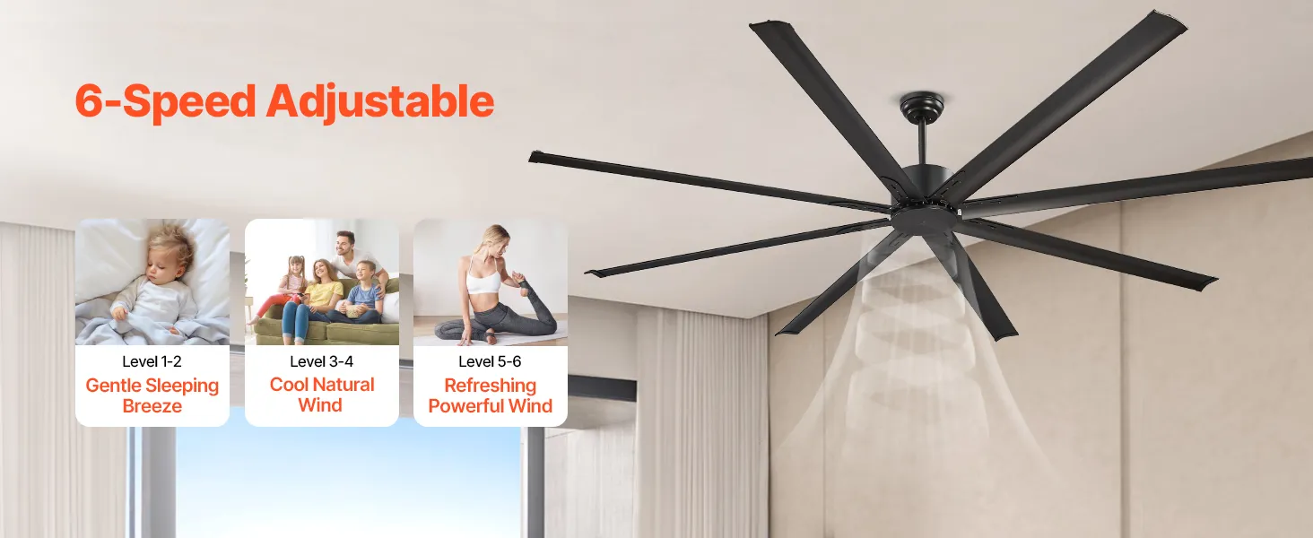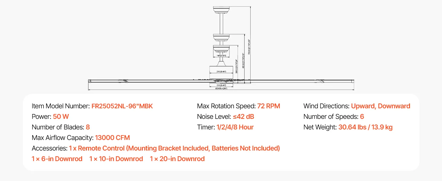 Stropný ventilátor 244 cm, 8 lopatiek, reverzný dc, 6 rýchostí, čierny