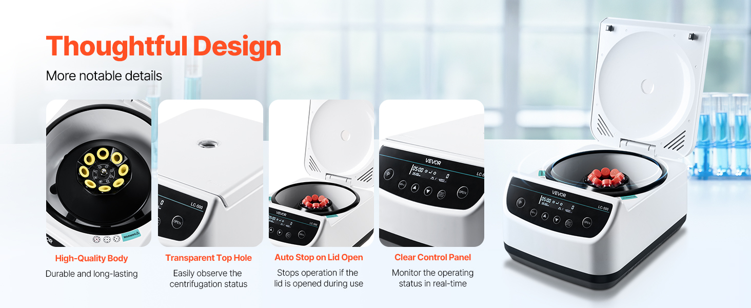 Každý aspekt našej laboratórnej odstredivky je starostlivo navrhnutý, od jej používateľsky prívetivých funkcií až po výber vysokokvalitných materiálov, čo zaručuje pohodlný a komfortný zážitok počas používania.