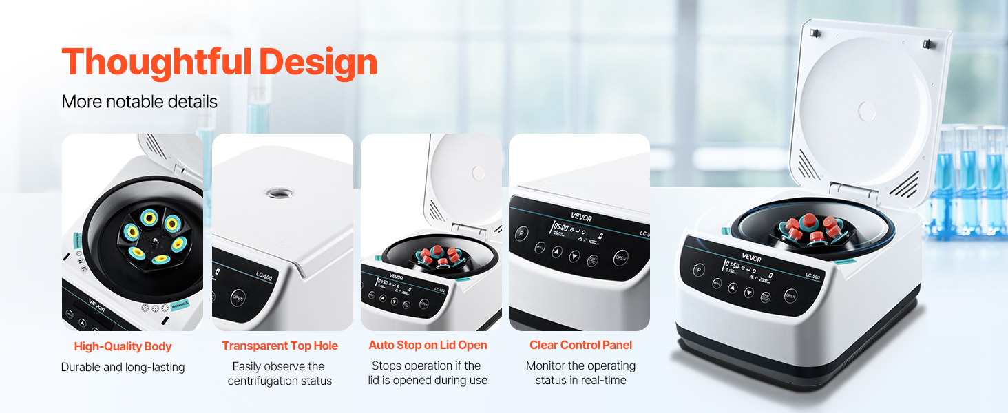 Každý aspekt našej laboratórnej odstredivky je starostlivo navrhnutý, od jej používateľsky prívetivých funkcií až po výber vysokokvalitných materiálov, čo zaručuje pohodlný a komfortný zážitok počas používania.