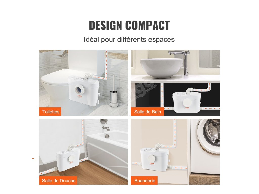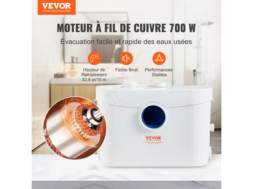 Hľadáte spôsob, ako jednoducho a rýchlo zlikvidovať odpadovú vodu? Toto macerátorové čerpadlo VEVOR poskytuje vysoký výtlak 32,8 ft a veľký prietok 9600 l/h s výkonným 700W medeným motorom. Či už ho pridávate do toalety, vane, sprchy, práčovne alebo kuchyne, tomuto kanalizačnému čerpadlu môžete dôverovať.