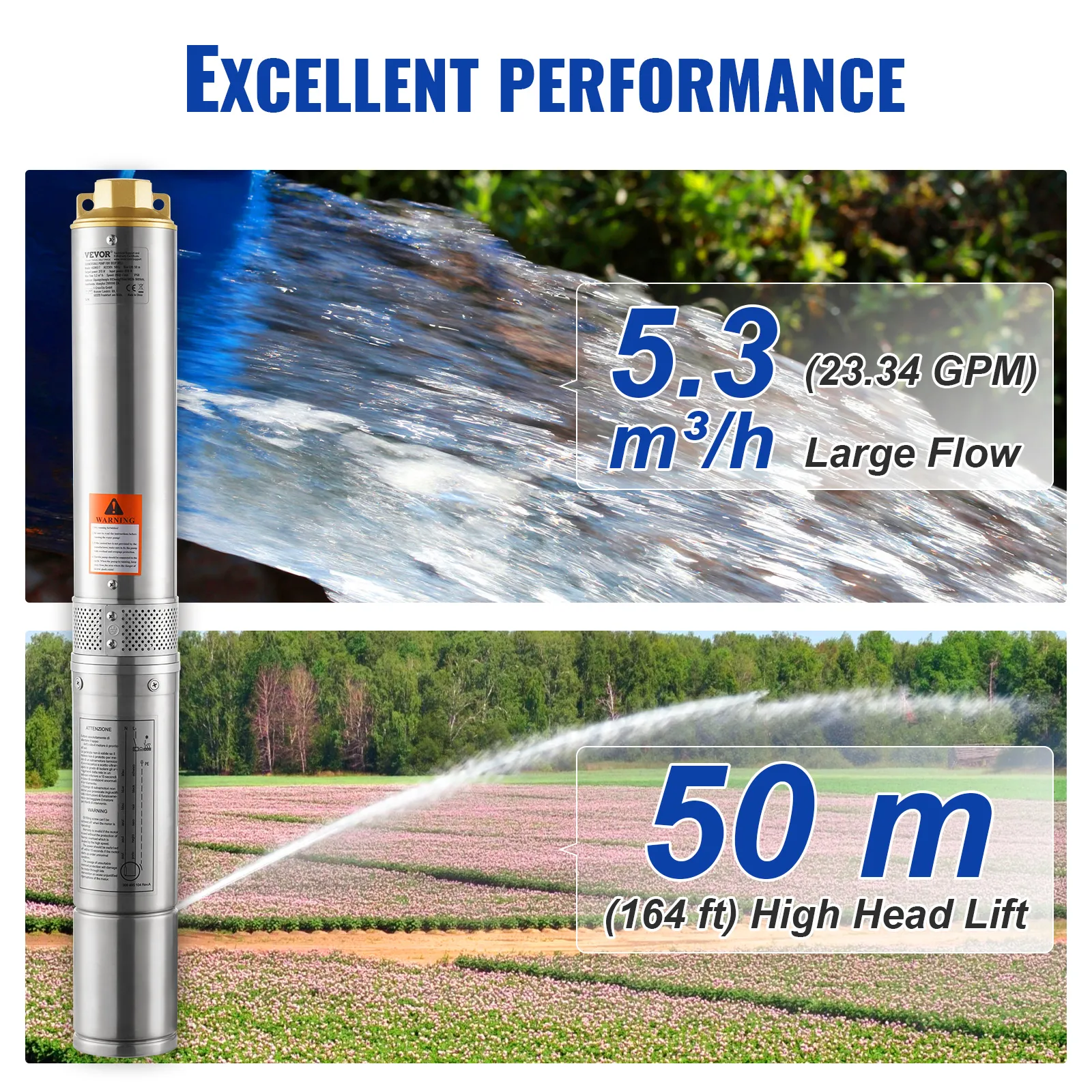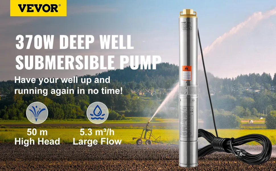 Toto ponorné studňové čerpadlo s výkonom 370 W má veľký prietok 5,3 m³/h a vysoký výtlak 50 m, čím spĺňa všetky vaše potreby vody. Viacnásobná filtračná sieť zabezpečuje krištáľovo čistú vodu.