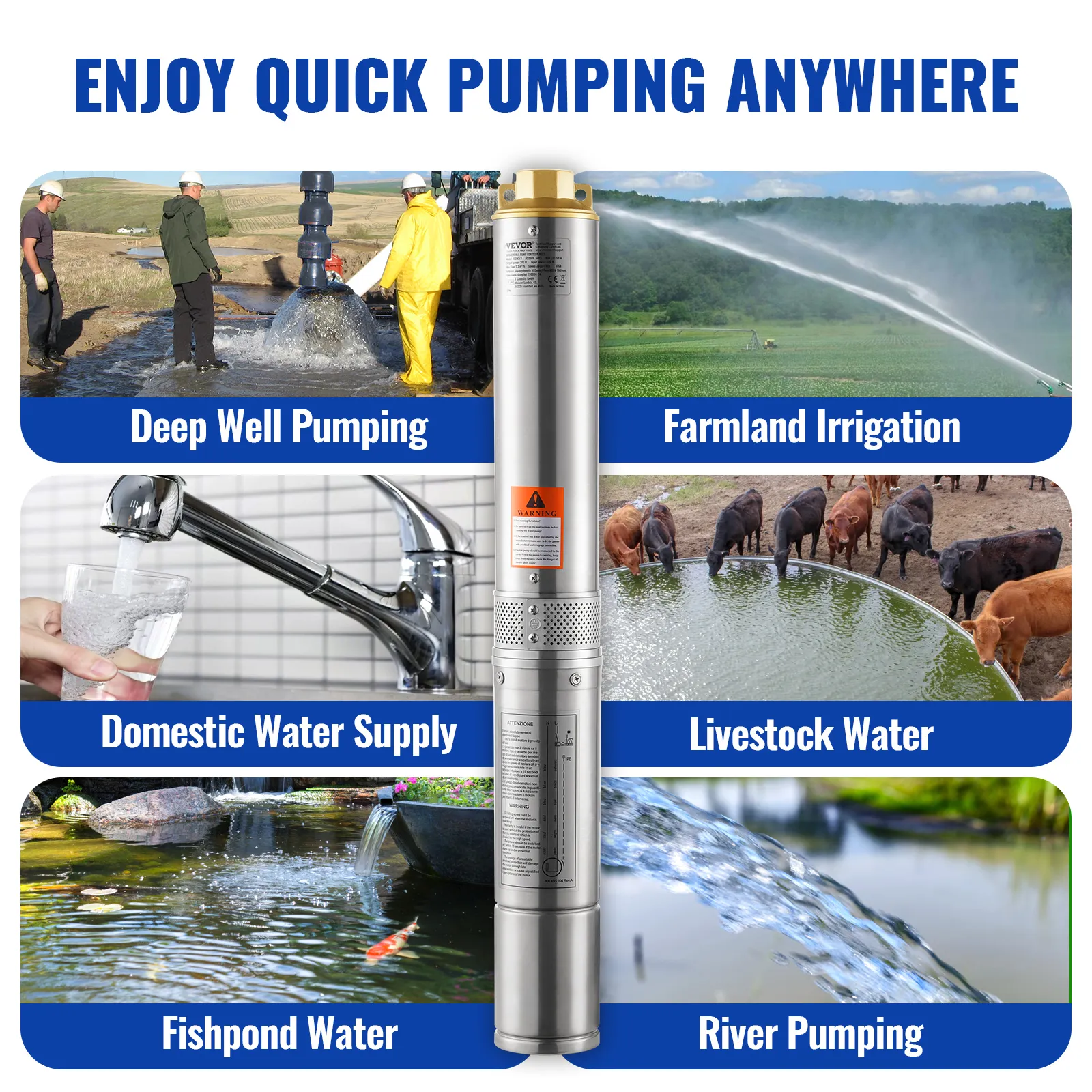Naše ponorné čerpadlo na vodu z hĺbkovej studne je ideálne pre domácnosti so zdrojom sladkej vody. Je tiež skvelým pomocníkom pri zavlažovaní poľnohospodárskej pôdy, zásobovaní horských oblastí vodou a odčerpávaní vody v mestách, továrňach, na železniciach a v baniach.