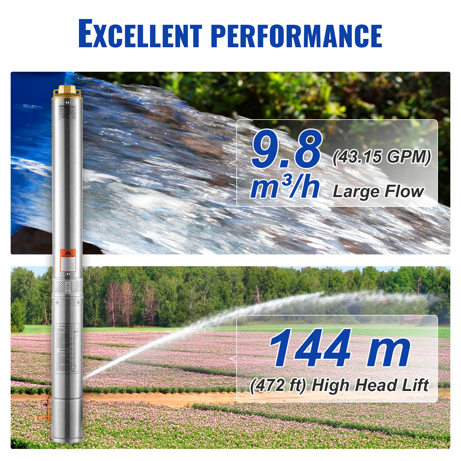 Toto 2200W ponorné čerpadlo do studne má veľký prietok 9,8 m³/h a vysoký zdvih 144 m, čím spĺňa všetky vaše potreby v oblasti vody. Viacnásobná filtračná sieť zabezpečuje krištáľovo čistú vodu.