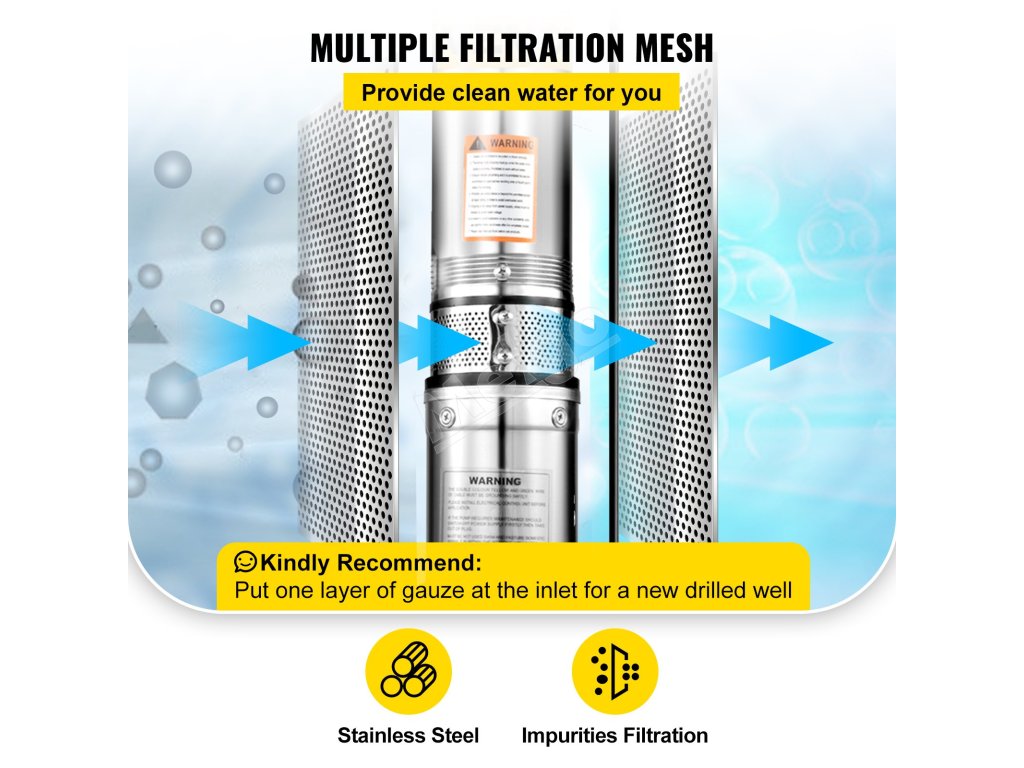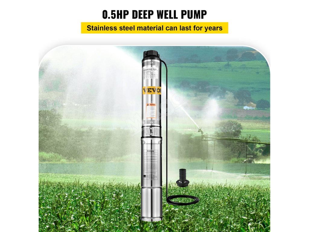 Toto ponorné čerpadlo vyrobené z nehrdzavejúcej ocele 304 je odolné čerpadlo do studne, ktoré vám vydrží v prevádzke niekoľko rokov. Okrem toho vám toto čerpadlo do hlbokých studní poskytuje pokročilý prietok, ktorý produkuje konzistentný prietok až do pomerne veľkej hĺbky pod povrchom. S týmto čerpadlom do hlbokých studní môžete rýchlo a pohodlne získať vodu aj z väčších hĺbok.