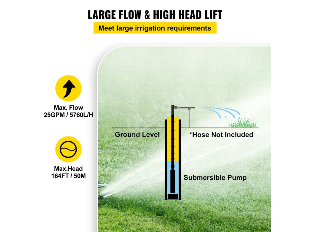 Maximálny prietok tohto ponorného čerpadla do studne je 25 GPM a najvyšší výtlak je 164 stôp, čo vám poskytuje vyššie požiadavky na čerpadlo. Oceľové obežné koleso poskytuje veľký prietok a zdvihy, aby ste získali lepší výkon čerpadla.