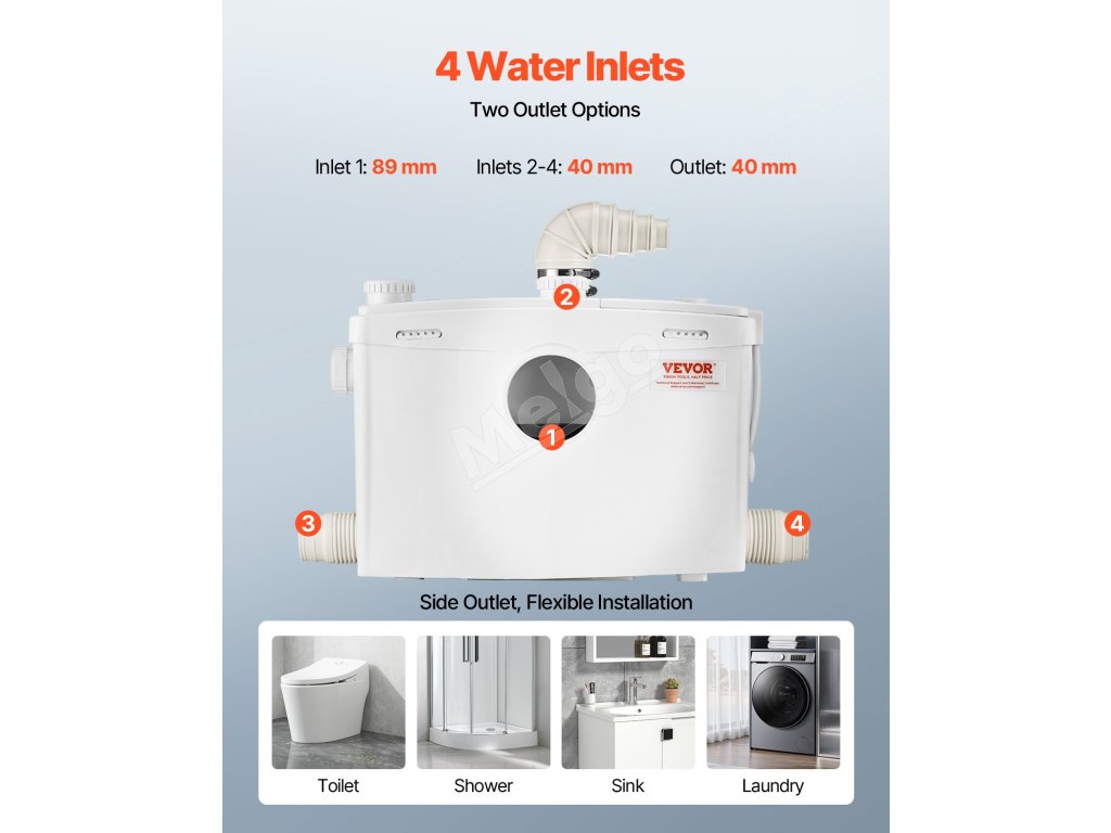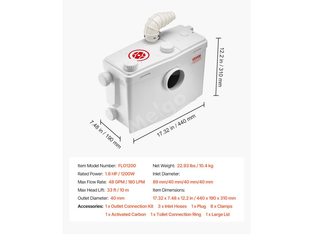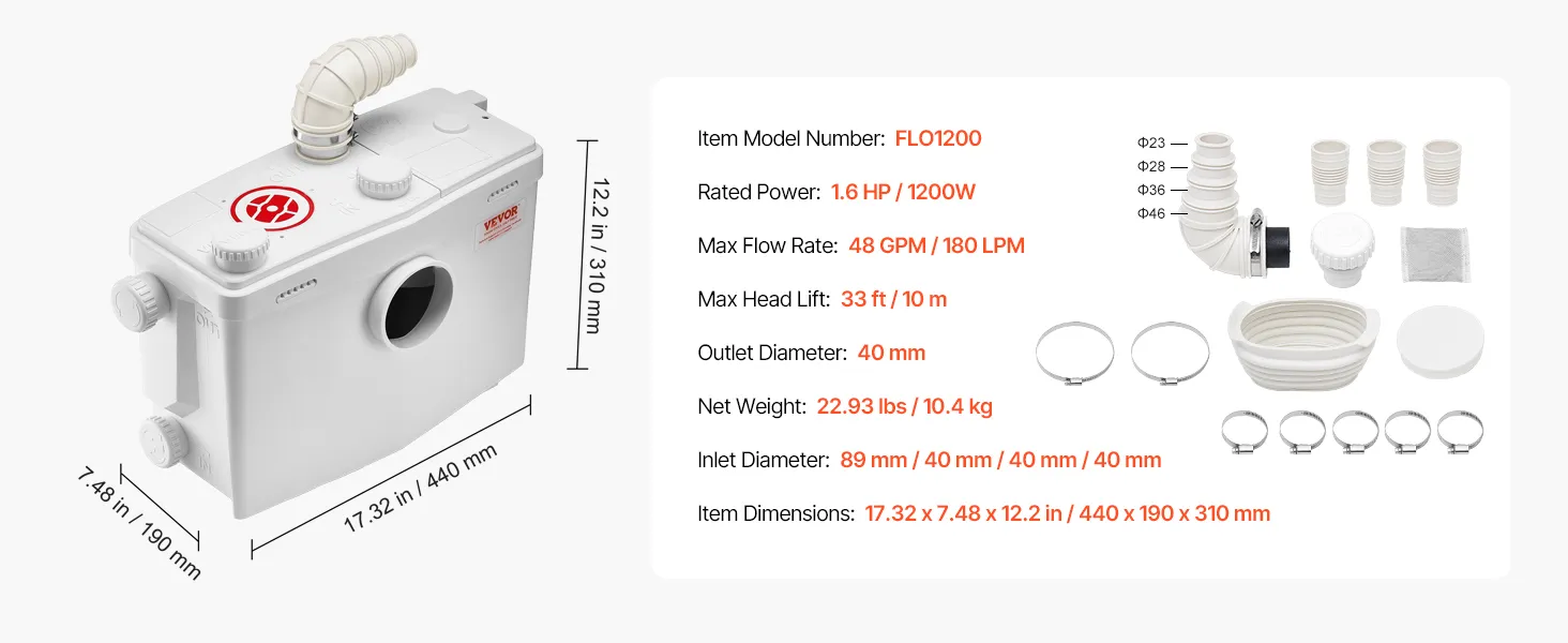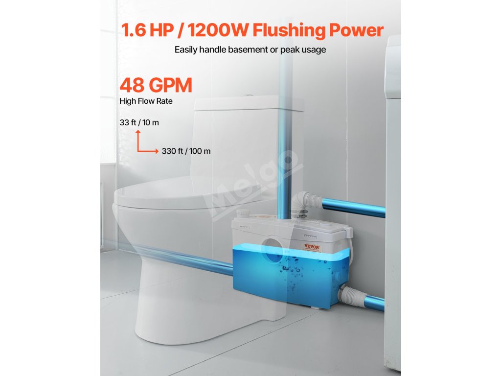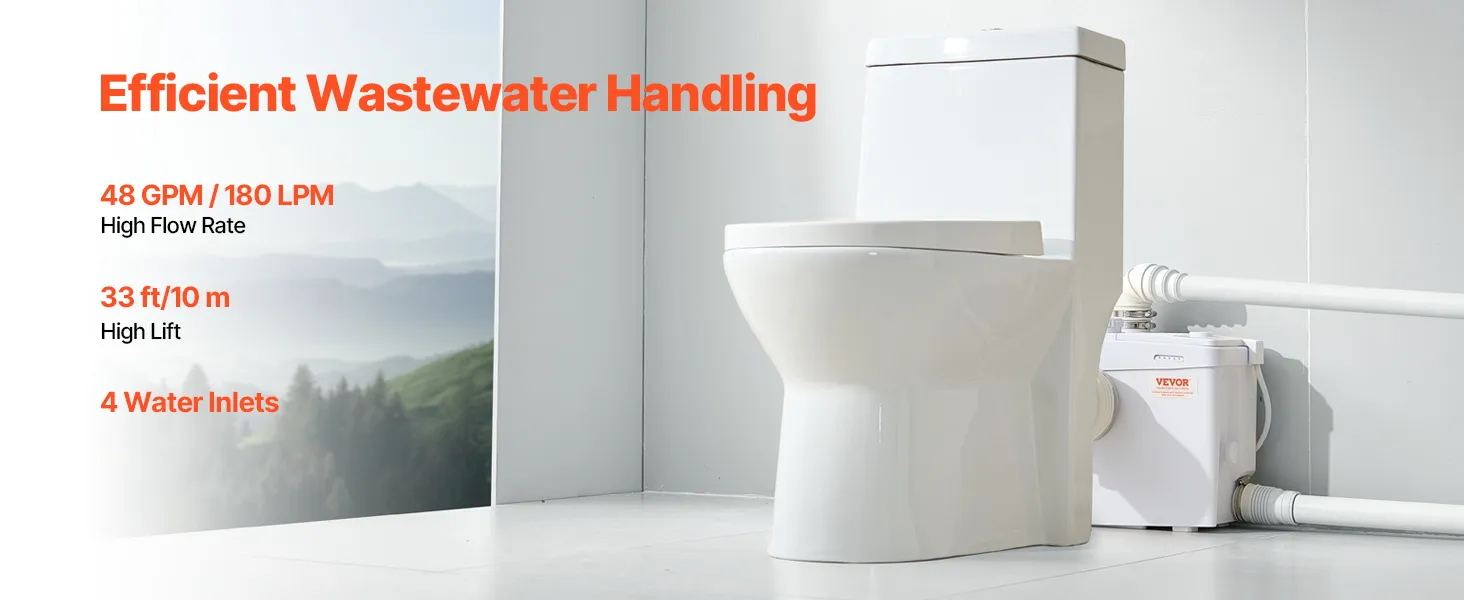 Potrebujete rýchly a bezproblémový spôsob likvidácie odpadovej vody? Toto macerátorové čerpadlo poskytuje výkonný 1200W medený motor, vysoký zdvih 33 stôp a veľký prietok 48 GPM, ktorý si ľahko poradí s odpadovými vodami. Ideálne pre vašu toaletu, vaňu, sprchu a práčovňu, je to spoľahlivé riešenie na bezproblémové odvádzanie vody.
