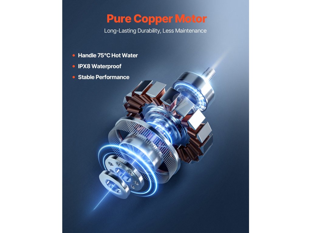 Vybavené medeným motorom a olejovou náplňou, toto maketové kanalizačné čerpadlo si ľahko poradí s odpadovou vodou až do 75 ℃/167℉ z umývačiek riadu a práčok.
