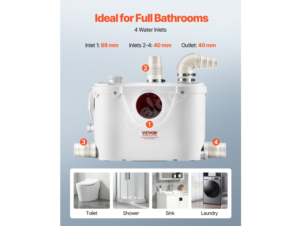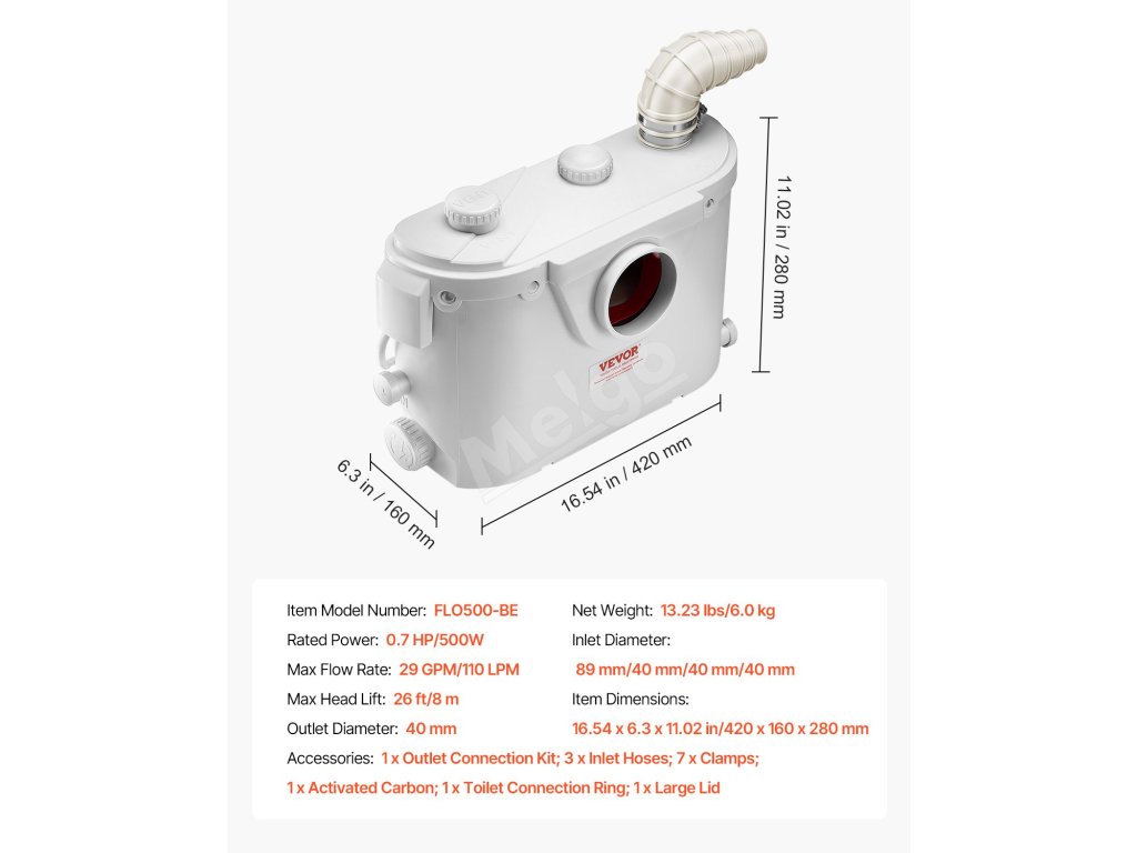 Potrebujete rýchly a bezproblémový spôsob likvidácie odpadovej vody? Toto macerátorové čerpadlo poskytuje výkonný 500W medený motor, vysoký zdvih 26 stôp a veľký prietok 29 GPM, vďaka čomu si ľahko poradí s odpadovými vodami. Ideálne pre vašu toaletu, vaňu, sprchu a práčovňu, je to spoľahlivé riešenie na bezproblémové odvádzanie vody.
