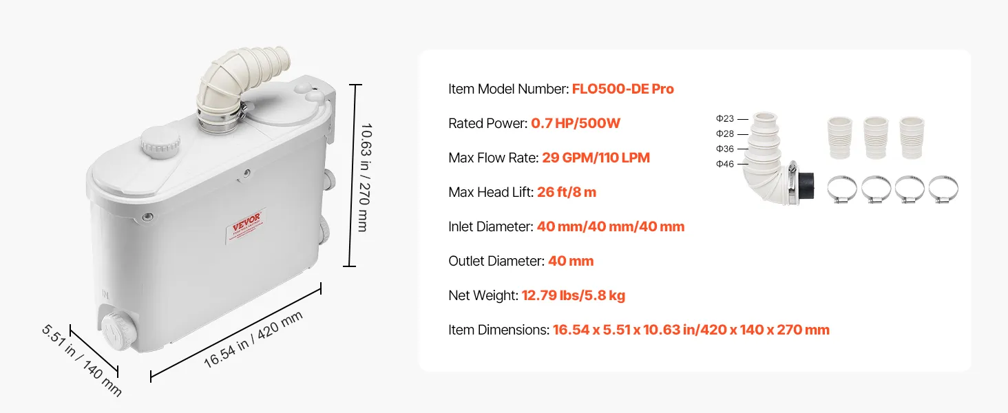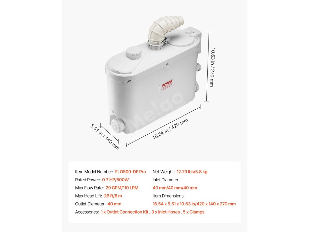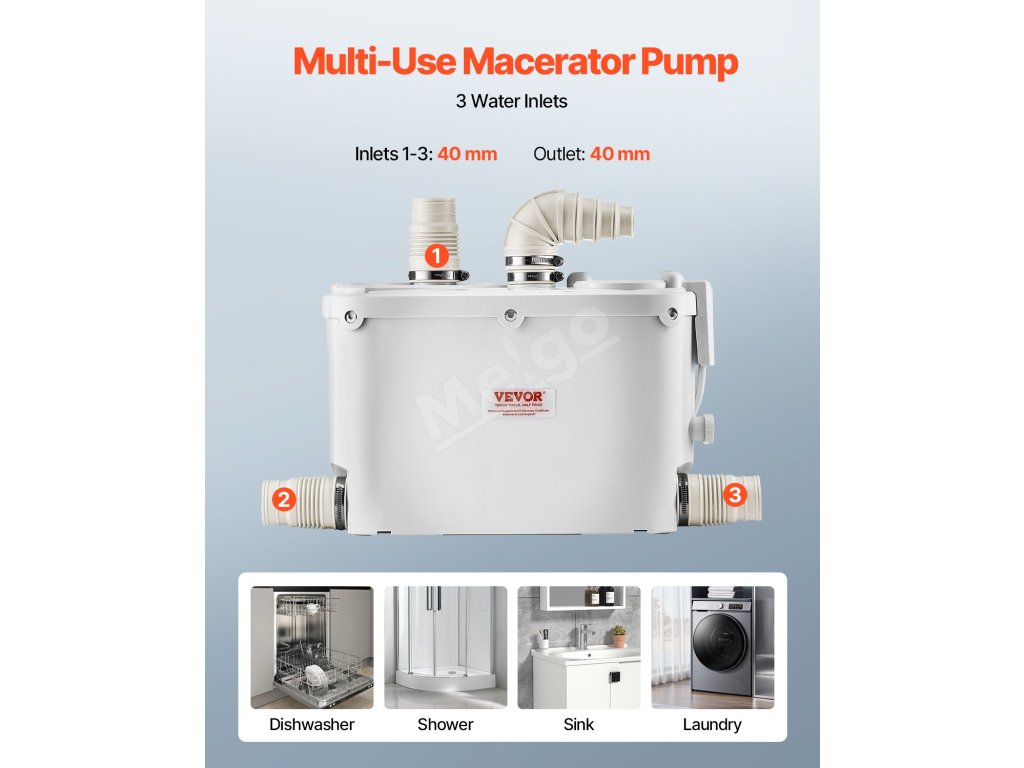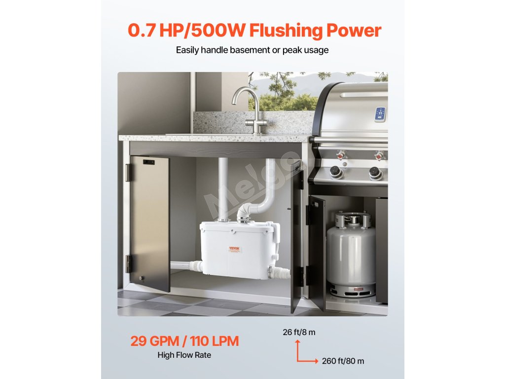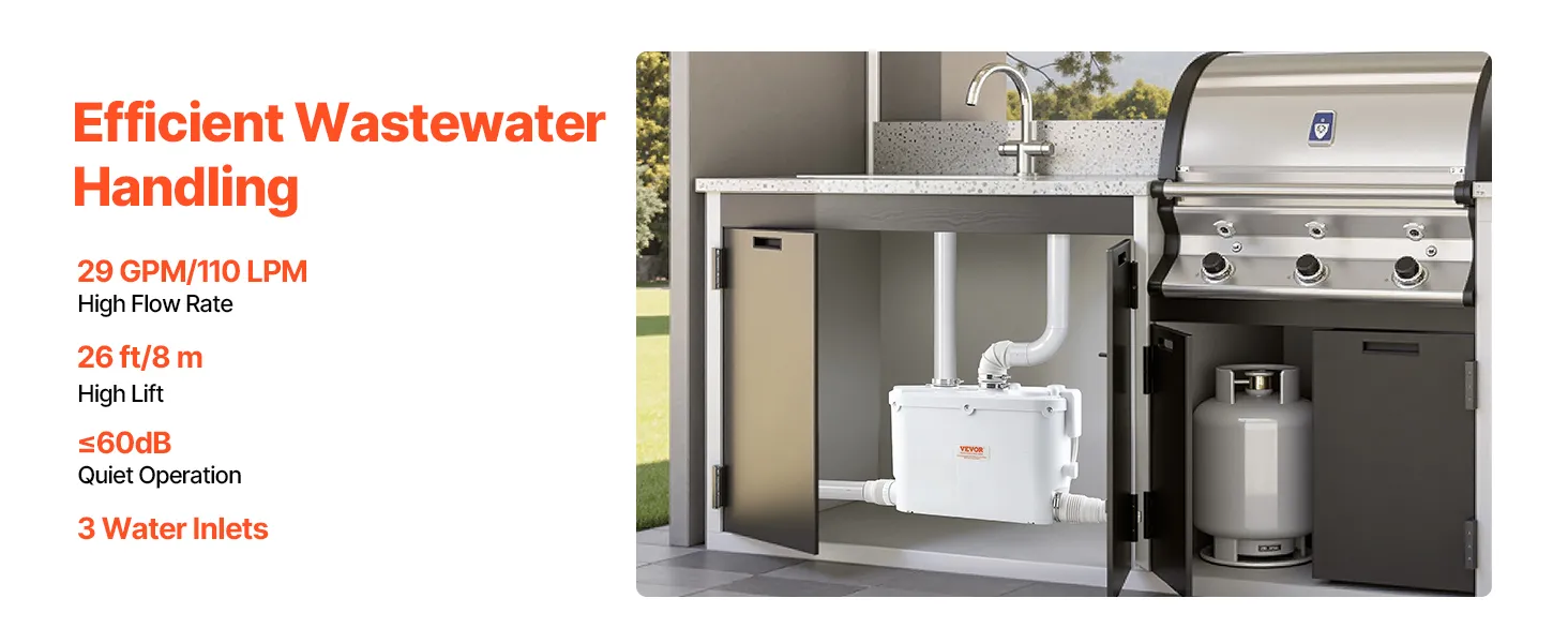 Potrebujete rýchly a bezproblémový spôsob likvidácie odpadovej vody? Toto macerátorové čerpadlo poskytuje výkonný 500W medený motor, vysoký zdvih 26 stôp a veľký prietok 29 GPM, vďaka čomu si ľahko poradí s odpadovými vodami. Ideálne pre vašu kuchyňu, vaňu, sprchu a práčovňu, je to spoľahlivé riešenie na bezproblémové odvádzanie vody.