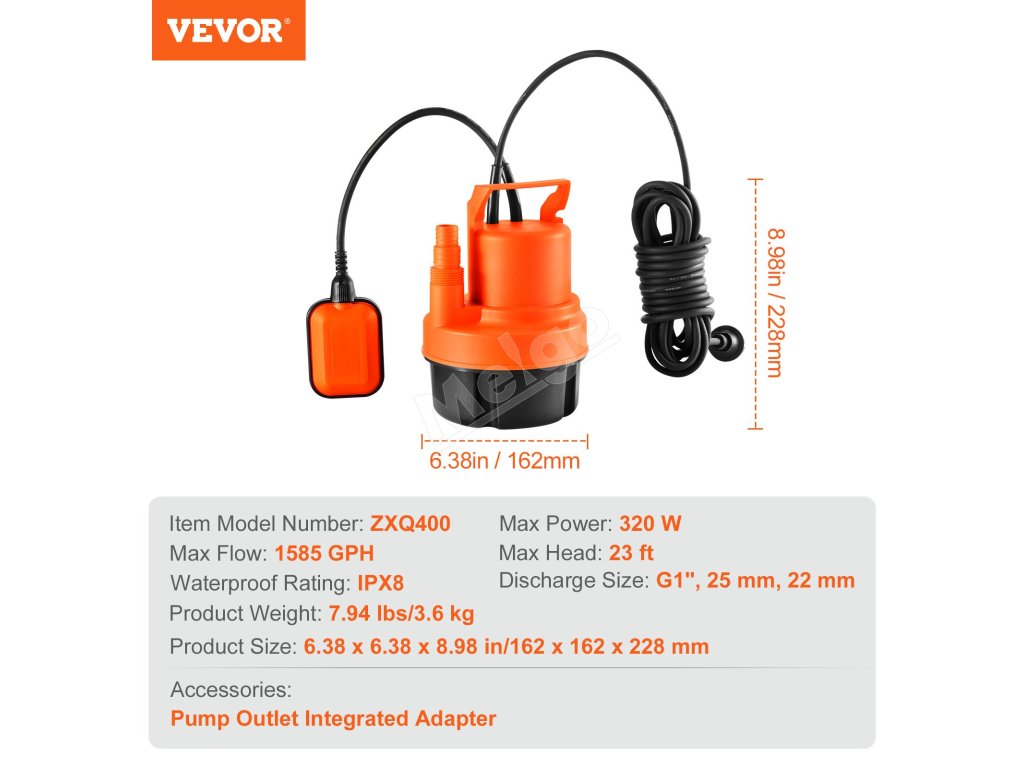 Ponorné úžitkové čerpadlo VEVOR - udržujte svoj dvor v suchu