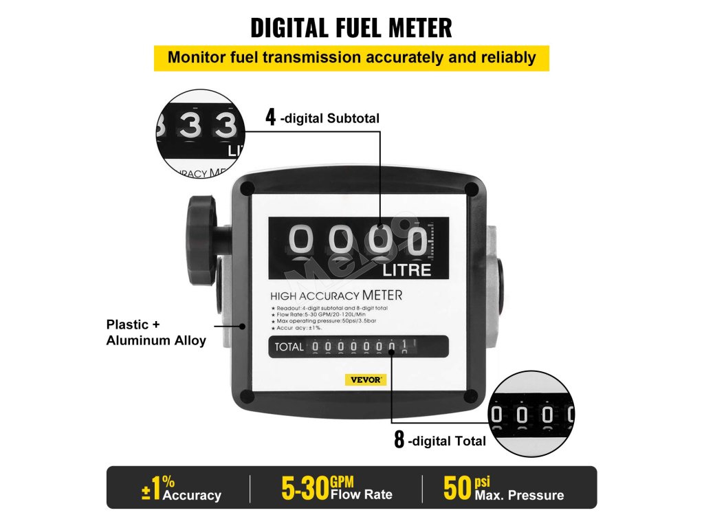 Vďaka vybaveniu mechanickým palivomerom môžete digitálne a presne sledovať prenos paliva. Pre rôzne požiadavky sú k dispozícii 4číselné medzisúčty a 8číselné celkové údaje.