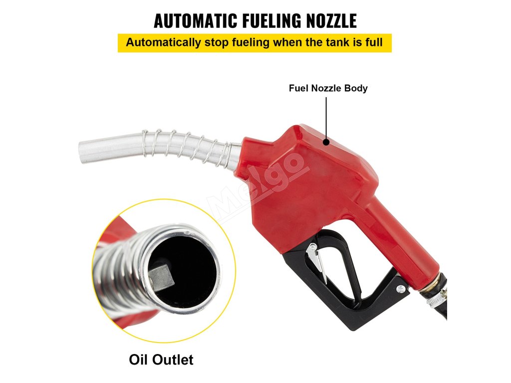 Naše čerpadlo na prečerpávanie nafty je vybavené funkciou automatického nasávania, ktorá šetrí čas potrebný na spustenie. Sací zdvih: 79" / 2 m. Výtlačná výška: 157" / 4 m.