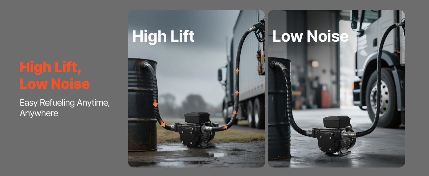 Vyznačuje sa pôsobivým maximálnym zdvihom 45 stôp (13,7 m) na čerpanie paliva na vyvýšených miestach pri zachovaní minimálneho hluku. Toto čerpadlo na prečerpávanie nafty je vhodné do nočných prevádzok alebo do prostredia citlivého na hluk, pretože účinne dodáva palivo bez toho, aby spôsobovalo poruchy.