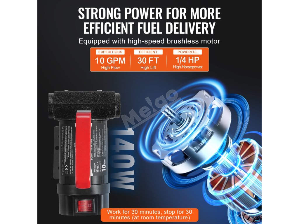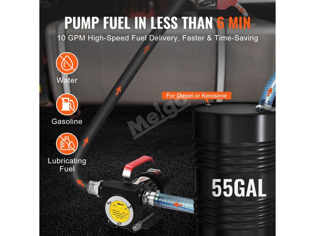 Toto čerpadlo na prečerpávanie paliva je vybavené vysokým prietokom 10 GPM, ktorý je poháňaný vysokootáčkovým motorom s 4600 otáčkami za minútu, ktorý dokáže čo najrýchlejšie prečerpať 55galónový sud s naftou za menej ako 6 minút . Môže vám priniesť dobrý zážitok z tankovania.