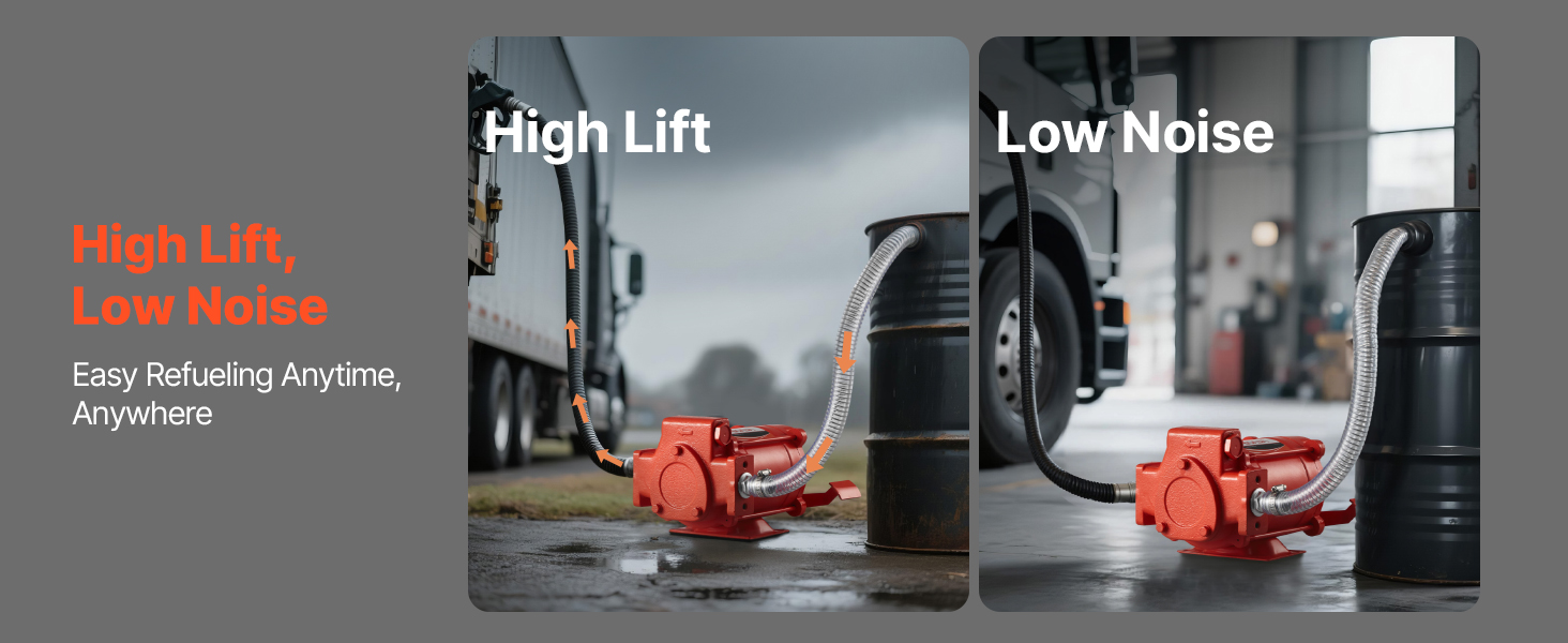 Vyznačuje sa pôsobivým maximálnym zdvihom 53 stôp (16,15 m) na čerpanie paliva na vyvýšených miestach pri zachovaní minimálneho hluku. Toto čerpadlo na prečerpávanie nafty je vhodné do nočných prevádzok alebo do prostredia citlivého na hluk, pretože účinne dodáva palivo bez toho, aby spôsobovalo poruchy.