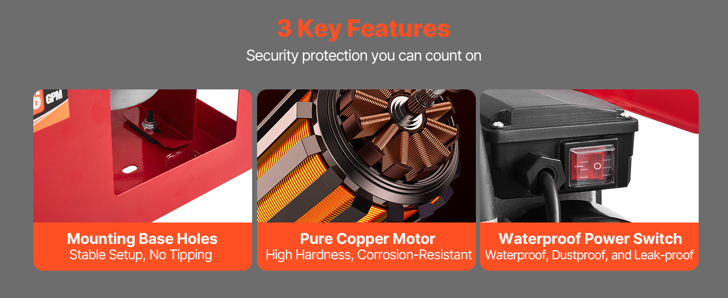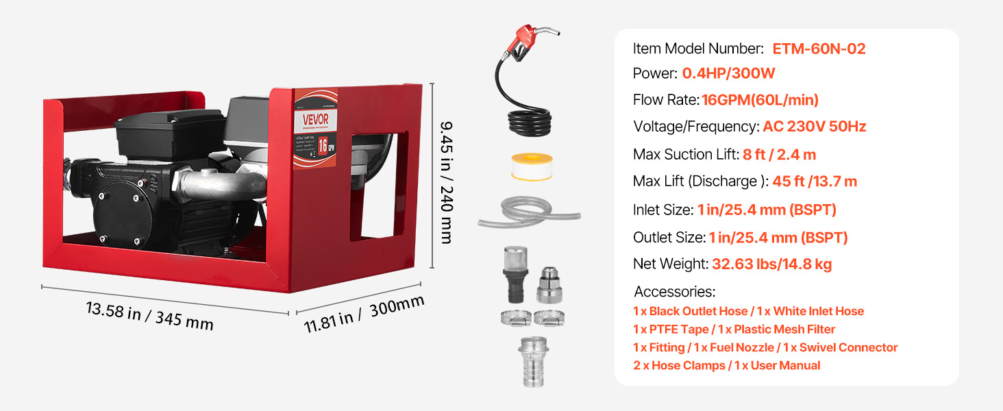 Rýchle prečerpávanie paliva s maximálnym prietokom 16 GPM (60 l/min), maximálnym nasávaním 8 ft (2,4 m) a maximálnym zdvihom 45 ft (13,7 m). Vďaka motoru z čistej medi, liatinovej hlave čerpadla a zabudovanej ochrane proti prehriatiu poskytuje toto čerpadlo spoľahlivý výkon a bezpečnú prevádzku pre naftu, petrolej a bionaftu.