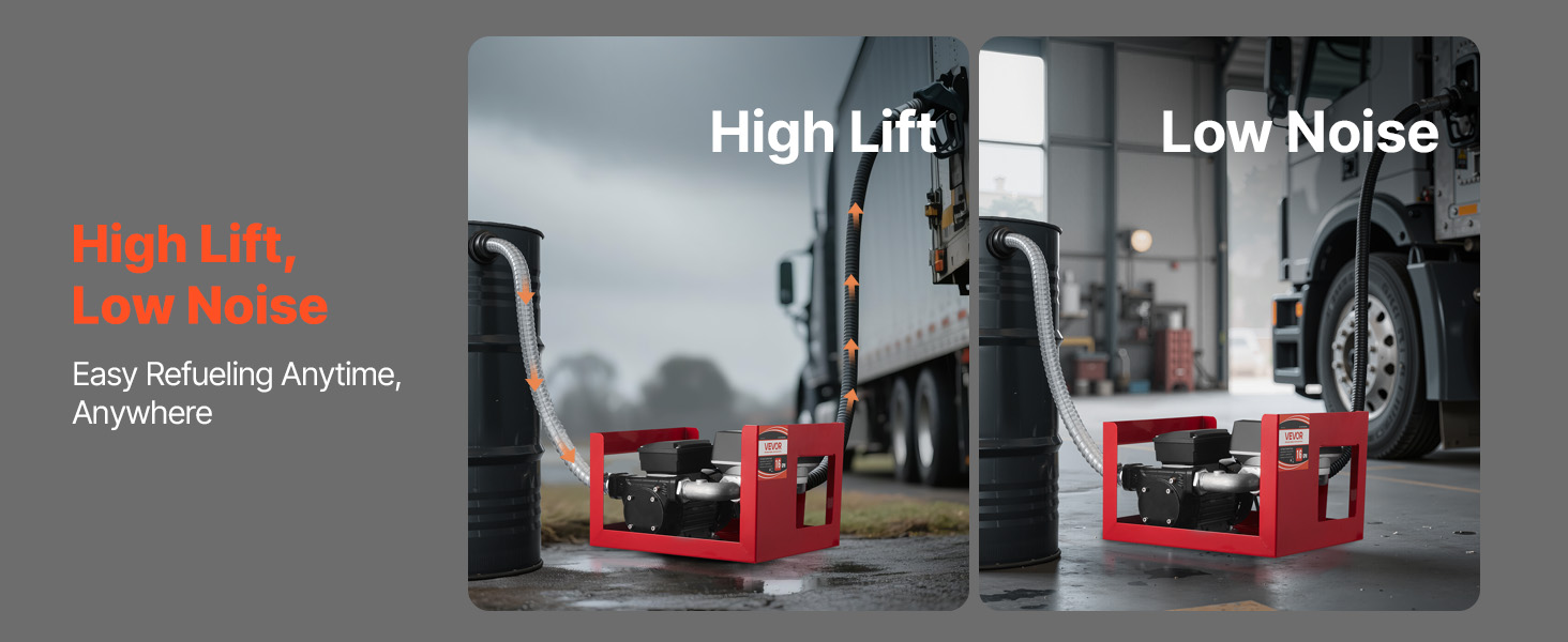 Vyznačuje sa pôsobivým maximálnym zdvihom 45 stôp (13,7 m) na čerpanie paliva na vyvýšených miestach pri zachovaní minimálneho hluku. Toto čerpadlo na prečerpávanie nafty je vhodné do nočných prevádzok alebo do prostredia citlivého na hluk, pretože účinne dodáva palivo bez toho, aby spôsobovalo poruchy.