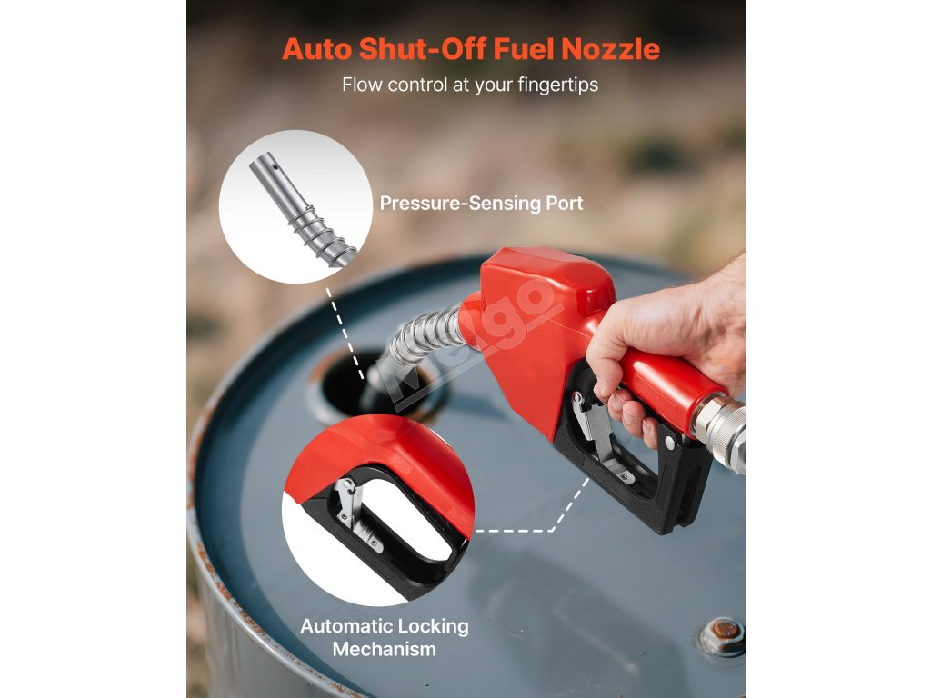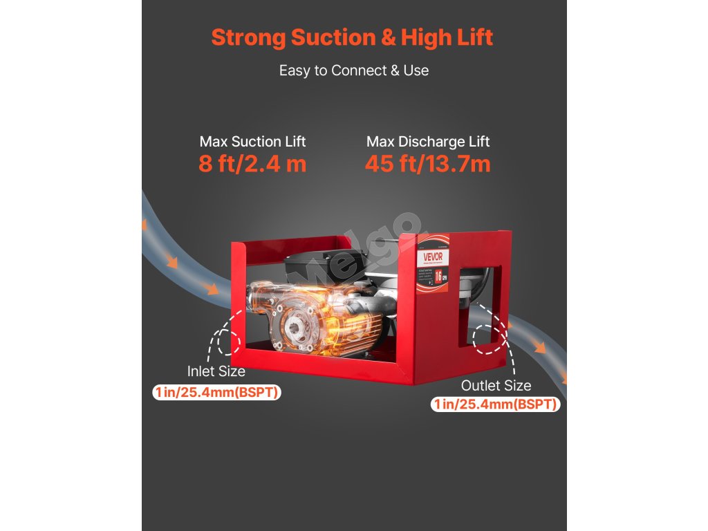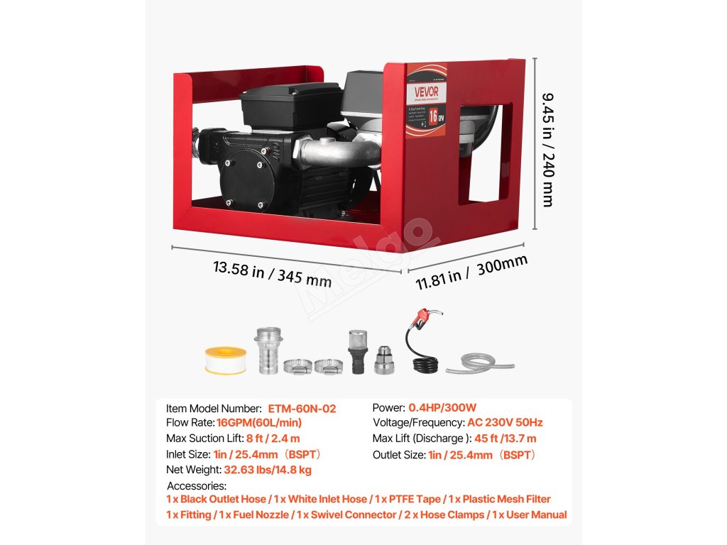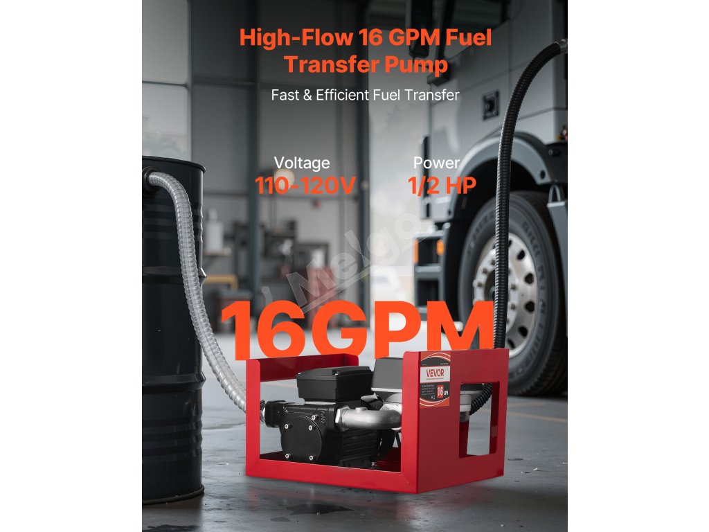 Rýchle prečerpávanie paliva s maximálnym prietokom 16 GPM (60 l/min), maximálnym nasávaním 8 ft (2,4 m) a maximálnym zdvihom 45 ft (13,7 m). Vďaka motoru z čistej medi, liatinovej hlave čerpadla a zabudovanej ochrane proti prehriatiu poskytuje toto čerpadlo spoľahlivý výkon a bezpečnú prevádzku pre naftu, petrolej a bionaftu.