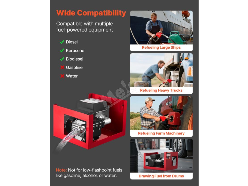 Toto čerpadlo na prečerpávanie nafty sa dodáva so štandardnou veľkosťou vstupu a výstupu a umožňuje rýchle nastavenie s rôznymi palivovými hadicami a zariadeniami. Je kompatibilné s rôznymi typmi strojov a skladovacích nádrží poháňaných naftou, vďaka čomu je tankovanie rýchle a bezproblémové.
