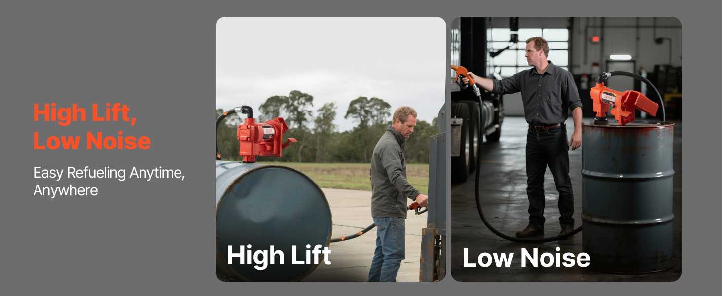 Vyznačuje sa pôsobivým maximálnym zdvihom 37 stôp (11,28 m) na čerpanie paliva na vyvýšených miestach pri zachovaní minimálneho hluku. Toto čerpadlo na prečerpávanie nafty je vhodné do nočných prevádzok alebo do prostredia citlivého na hluk, pretože účinne dodáva palivo bez toho, aby spôsobovalo poruchy.