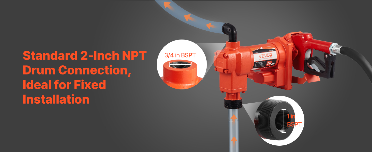 Toto čerpadlo na prečerpávanie nafty sa dodáva so štandardnou veľkosťou vstupu a výstupu a umožňuje rýchle nastavenie s rôznymi palivovými hadicami a zariadeniami. Je kompatibilné s rôznymi typmi strojov a skladovacích nádrží poháňaných naftou, vďaka čomu je tankovanie rýchle a bezproblémové.