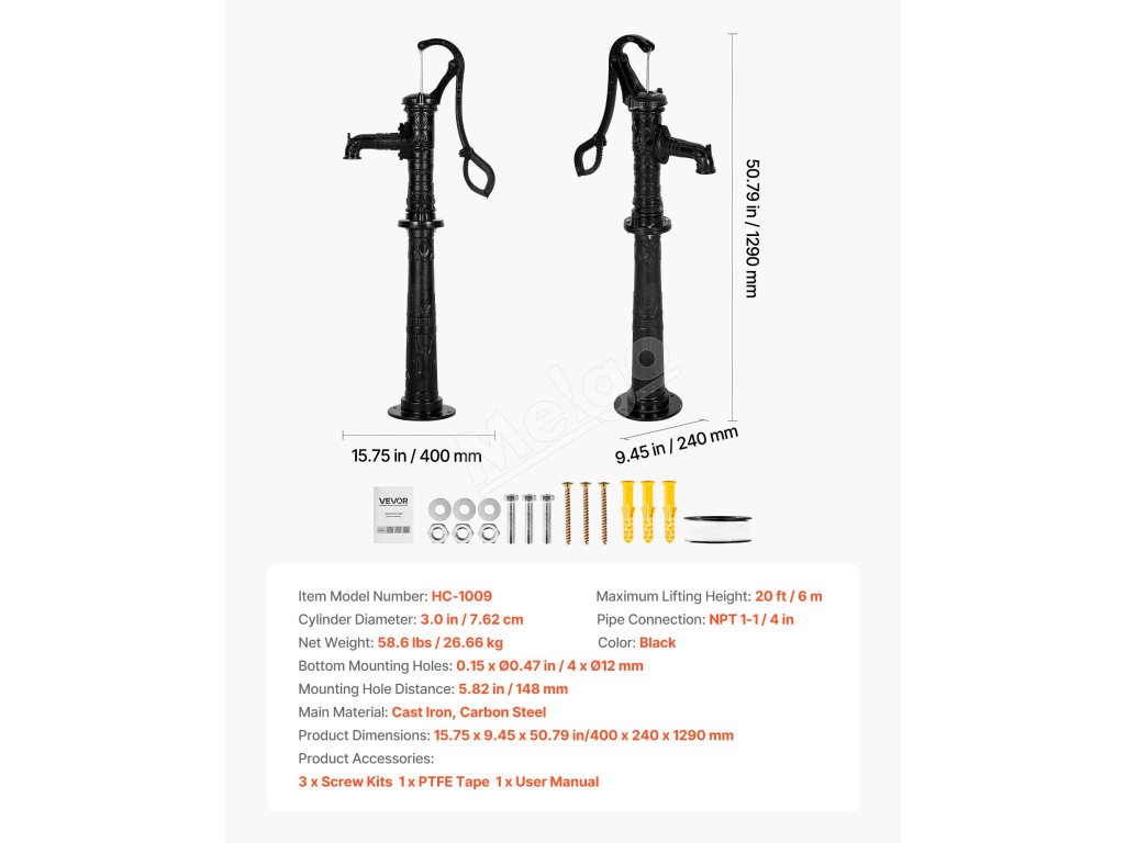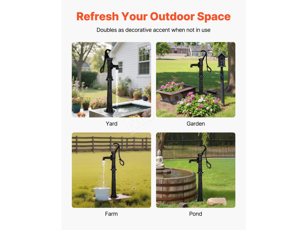 Toto ručné čerpadlo na vodu poskytuje spoľahlivý prístup k vode, ktorý vyhovie vašim potrebám, od pokojných domácich záhrad až po rozsiahle poľnohospodárske plochy. Je skonštruované pre flexibilitu a zaručuje, že môžete čerpať vodu kedykoľvek a kdekoľvek s rôznorodým využitím.
