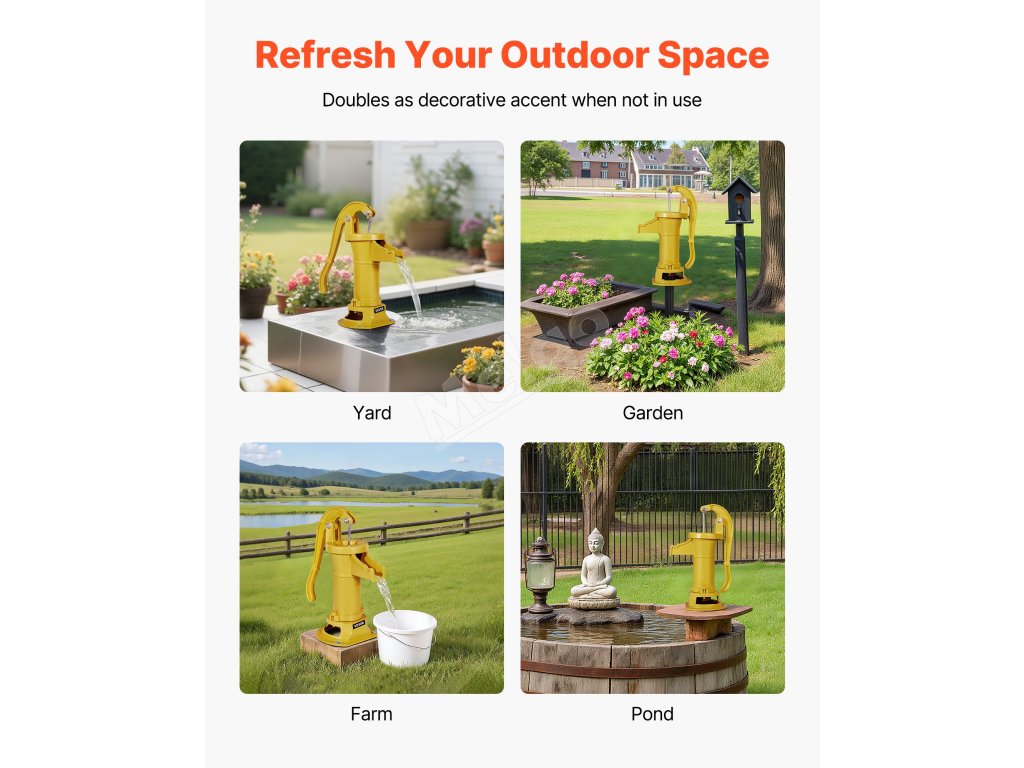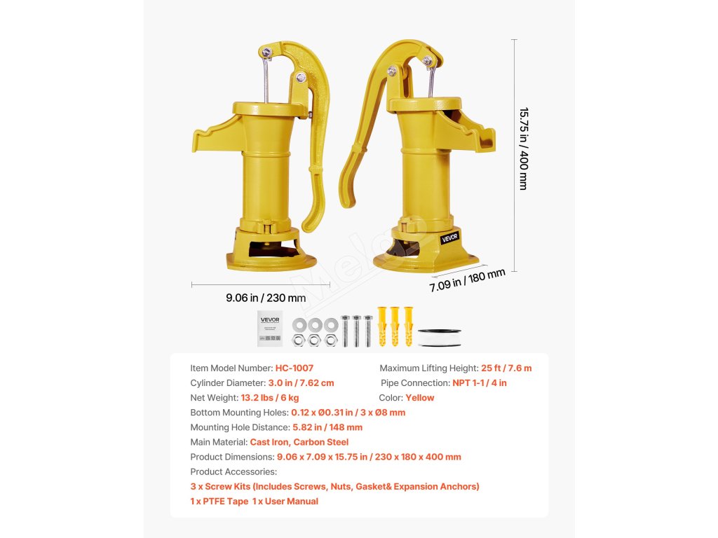 Toto ručné čerpadlo na vodu poskytuje spoľahlivý prístup k vode, ktorý vyhovie vašim potrebám, od pokojných domácich záhrad až po rozsiahle poľnohospodárske plochy. Je skonštruované pre flexibilitu a zaručuje, že môžete čerpať vodu kedykoľvek a kdekoľvek s rôznorodým využitím.