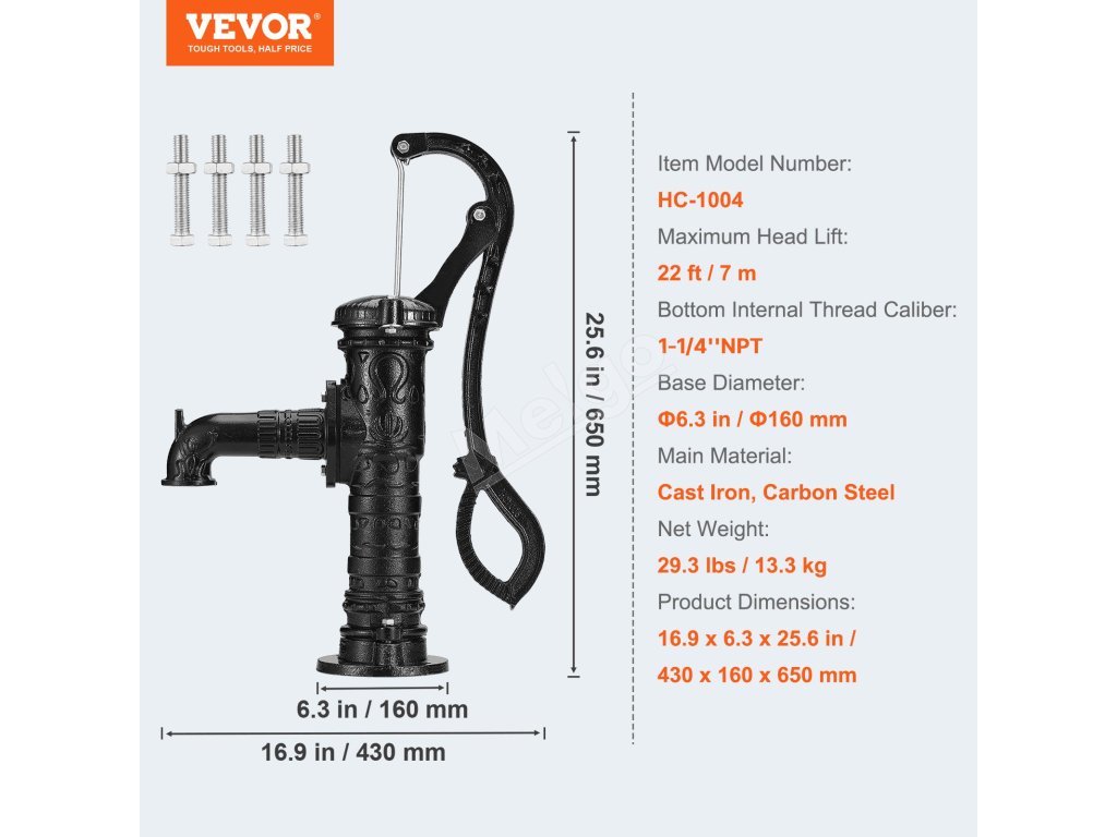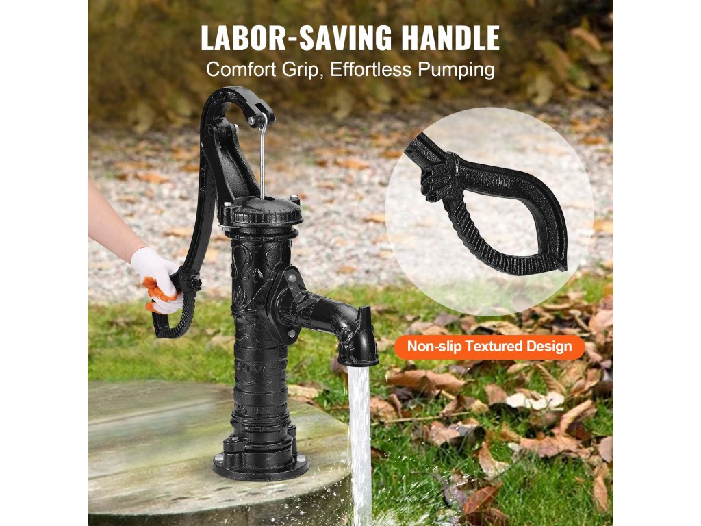 Naše ručné čerpadlo je pripravené, či už ide o zavlažovanie domáceho dvora, farmy alebo núdzovú zálohu. Je vyrobené zo špičkovej liatiny, má spodný vnútorný závit kalibru NPT1-1/4" a maximálny zdvih 22 stôp, bez námahy uspokojí vaše každodenné potreby vody a zabezpečí, že účinnosť bude vždy na dosah.