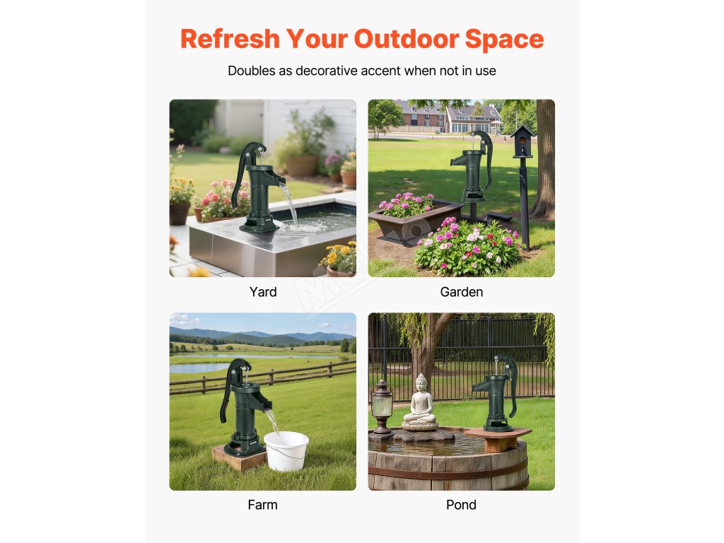 Toto ručné čerpadlo na vodu poskytuje spoľahlivý prístup k vode, ktorý vyhovie vašim potrebám, od pokojných domácich záhrad až po rozsiahle poľnohospodárske plochy. Je skonštruované pre flexibilitu a zaručuje, že môžete čerpať vodu kedykoľvek a kdekoľvek s rôznorodým využitím.