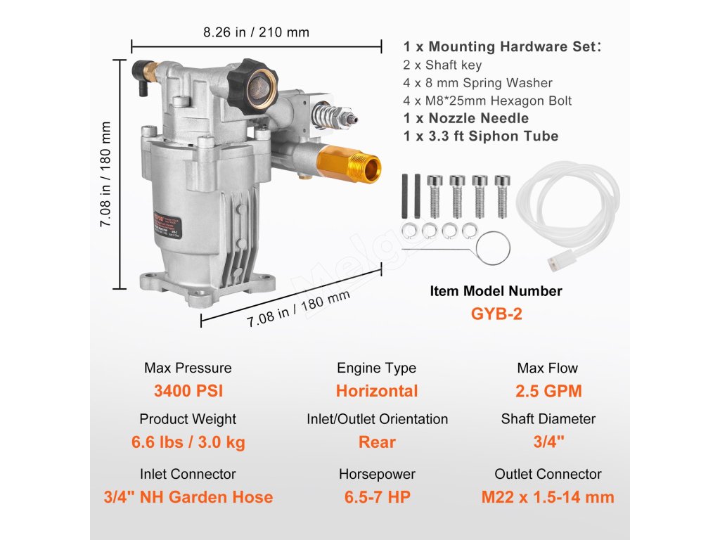 Čerpadlo tlakovej umývačky hriadeľ 19 mm horizontálne 3400 PSI 2.5 GPM