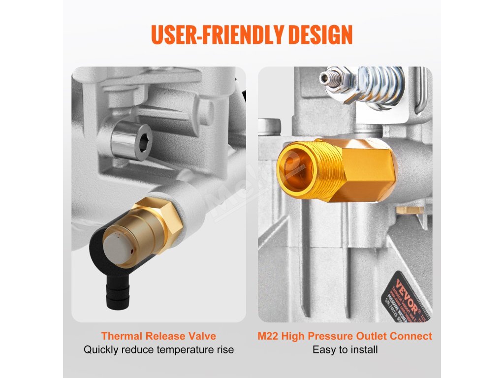 Naše náhradné čerpadlo pre elektrické umývačky má tepelný uvoľňovací ventil na bezpečné používanie. Keď vnútorná teplota hlavy čerpadla prekročí 58 ℃, automaticky sa zapne, aby sa ochladila.