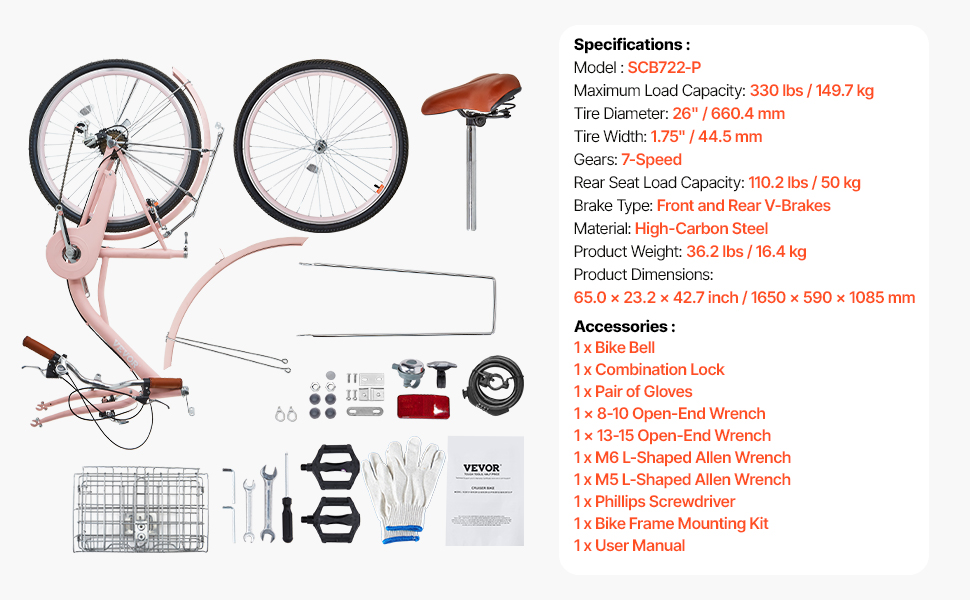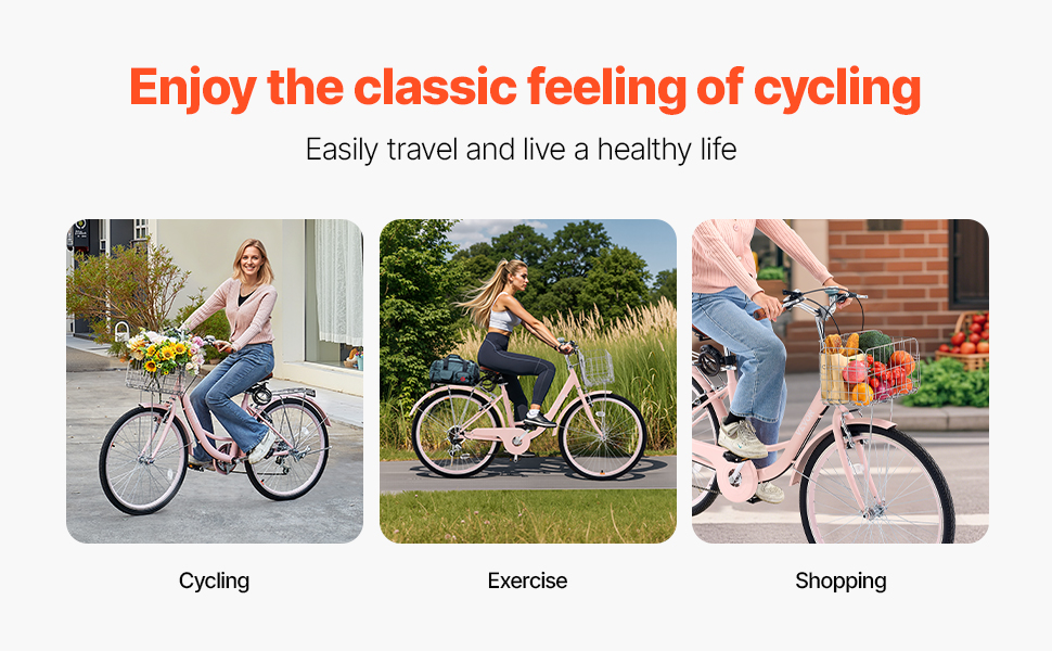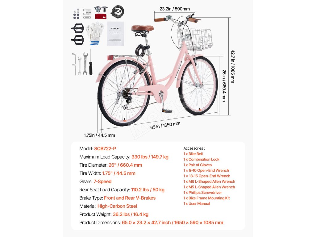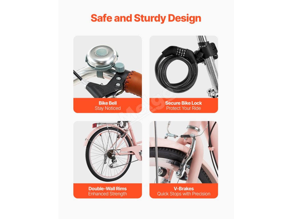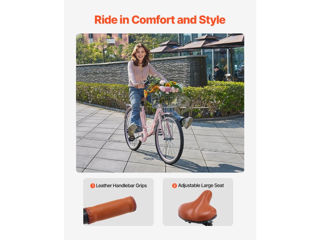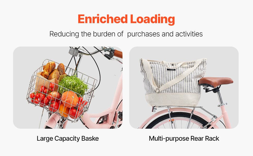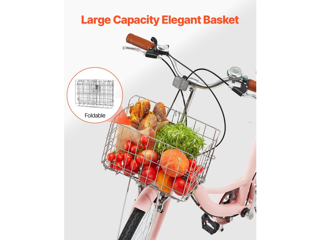 Tento cruiser bicykel má priestranný predný košík a pevný zadný nosič, vďaka čomu je ideálny na prepravu potravín, tašiek alebo iných nevyhnutných vecí. Či už vybavujete pochôdzky alebo si užívate pokojnú jazdu, ponúka pohodlie, ktoré potrebujete na každodenné použitie.