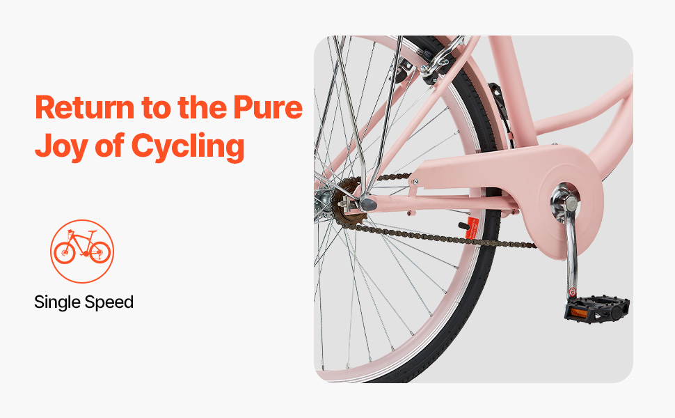 Tento bicykel typu cruiser je vybavený ľahko použiteľným jednorýchlostným systémom, ktorý vracia cyklistike jej čistú podobu bez námahy. Vychutnajte si jednoduchosť hladkej jazdy bez námahy, vhodnej na uvoľnenú a prirodzenú jazdu na bicykli.