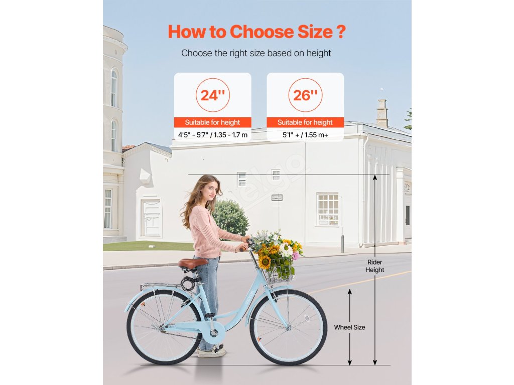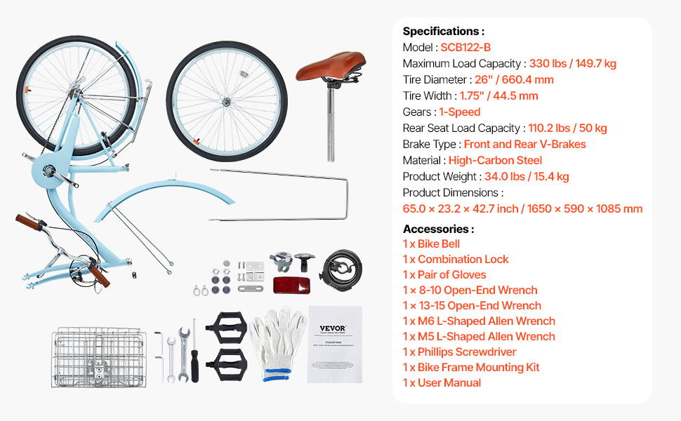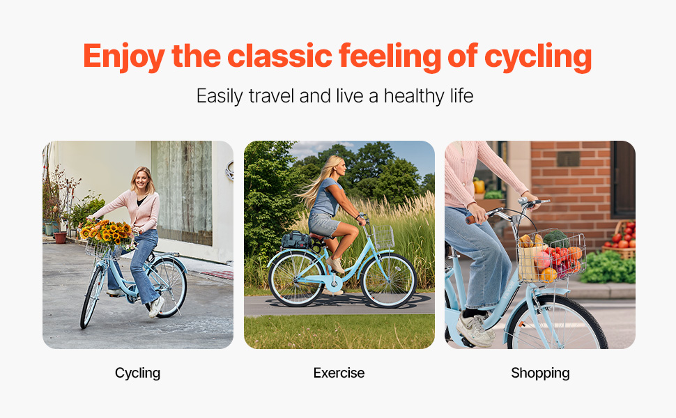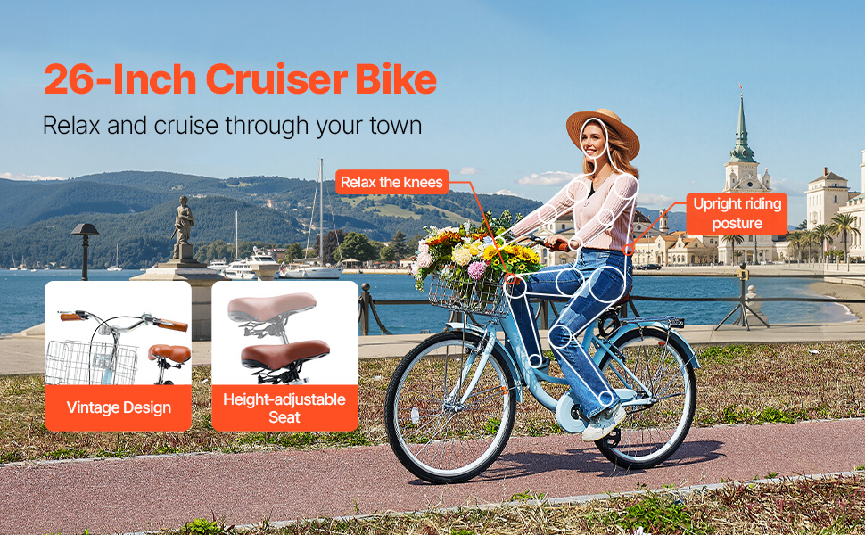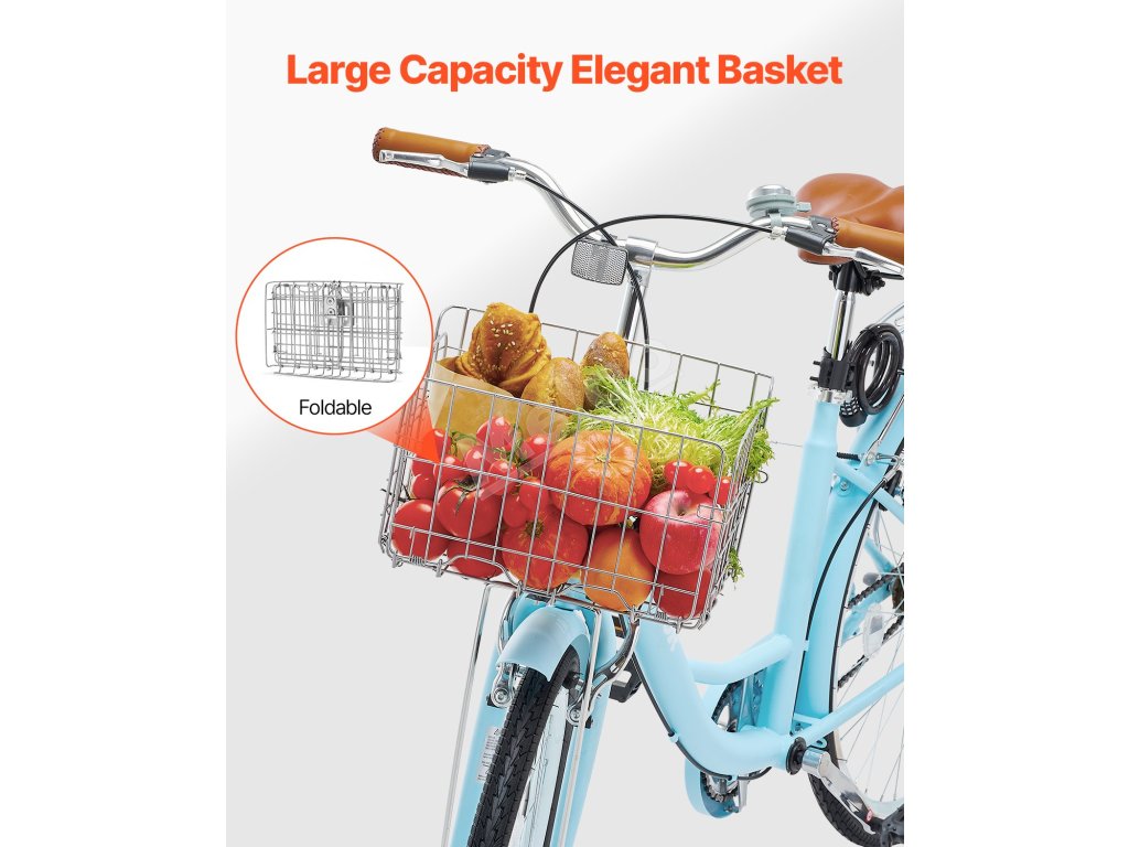 Tento štýlový retro cruiser bicykel má ergonomický dizajn, skladací košík s nepremokavou vložkou a robustný rám pre plynulú jazdu v meste a na predmestí. Jednorýchlostný systém sa ľahko používa, takže je ideálny pre seniorov, začiatočníkov a tých, ktorí majú stále trasy.