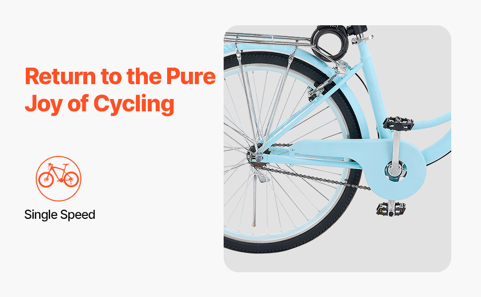 Tento bicykel typu cruiser je vybavený ľahko použiteľným jednorýchlostným systémom, ktorý vracia cyklistike jej čistú podobu bez námahy. Vychutnajte si jednoduchosť hladkej jazdy bez námahy, vhodnej na uvoľnenú a prirodzenú jazdu na bicykli.